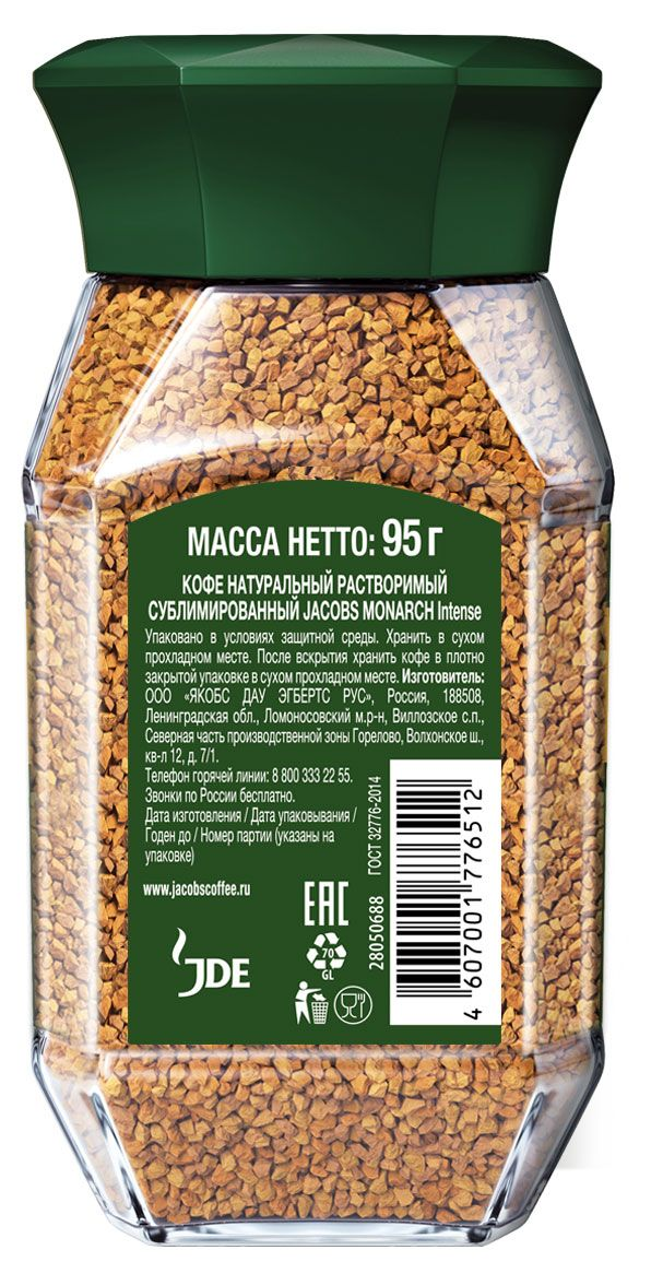 Кофе Jacobs Monarch Intense крепкий растворимый сублимированный, 95г