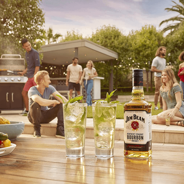 Jim Beam White в металлической подарочной упаковке c двумя стаканами. Джим Бим – бурбон № 1 в мире! Каждый год по всему миру выпивается свыше 40 миллионов литров этого изумительного напитка. Настоящий виски, получивший повсеместное признание благодаря своему отменному качеству и веселому характеру. Джим Бим выдерживают в новых обугленных бочках, сделанных из дерева белого дуба. Все это придает бурбону особый, ни с чем не сравнимый самобытный вкус. Джим Бим стал полноправным элементом американской культуры благодаря отменному качеству и самобытному вкусу. Родом из США, штат Кентукки – родины всех бурбонов. Производится из кукурузы (содержание кукурузы в Jim Beam – 70–75%). Для выдержки используются новые обугленные дубовые бочки. Виски взаимодействует с дубовой бочкой в процессе выдержки без предварительной фильтрации. По Законодательству США минимальная выдержка бурбона – 2 года, при этом, бурбоны Jim Beam выдерживаются минимум 4 года.