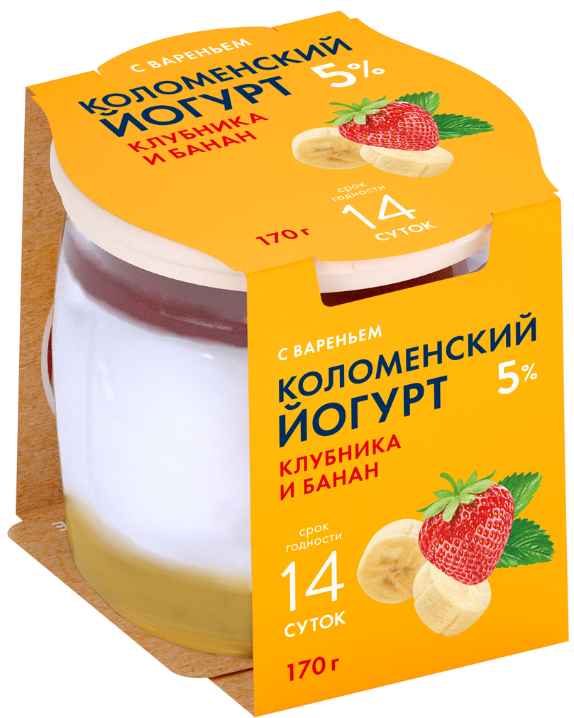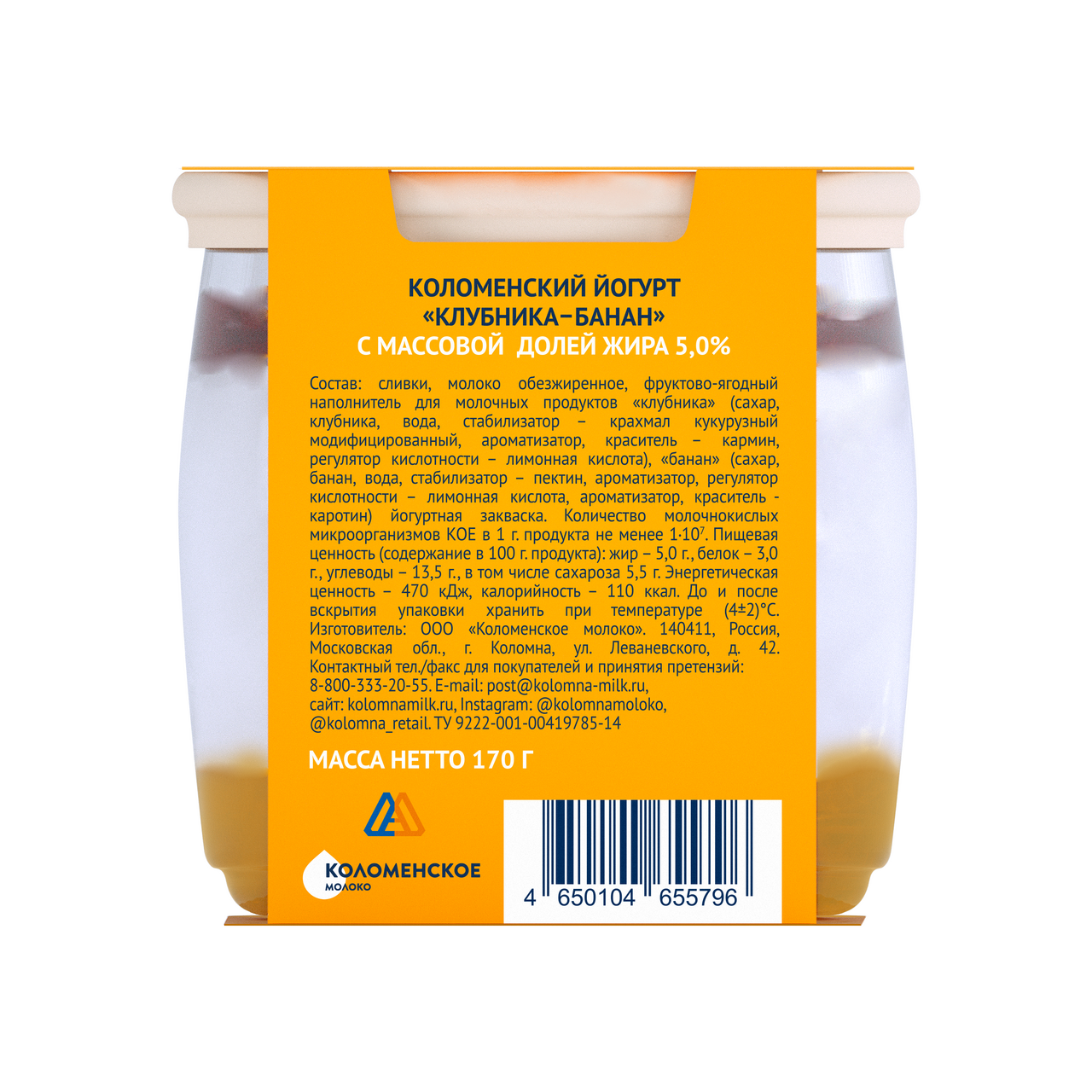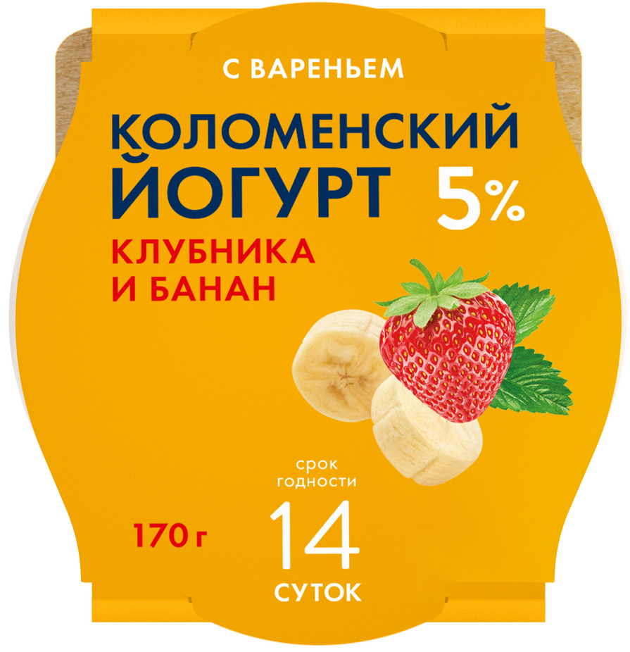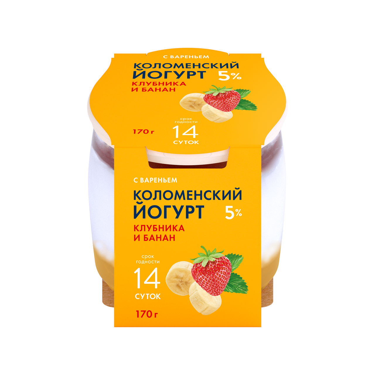 Йогурт Коломенское молоко Коломенский клубника и банан 5%, 170г