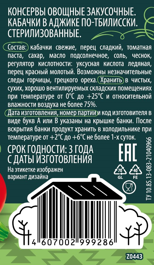 Кабачки Дядя Ваня в аджике по-тбилисски, 460г