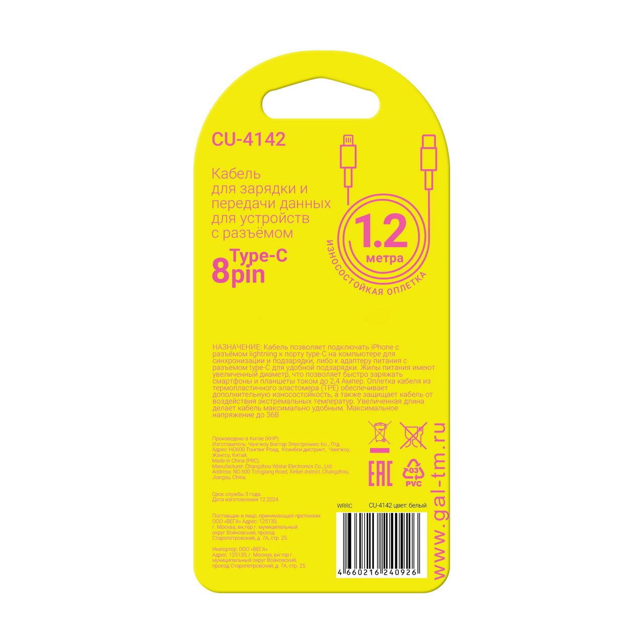 Кабель GAL CU-4142 Type-C - 8 Pin 2.4А, 1.2м