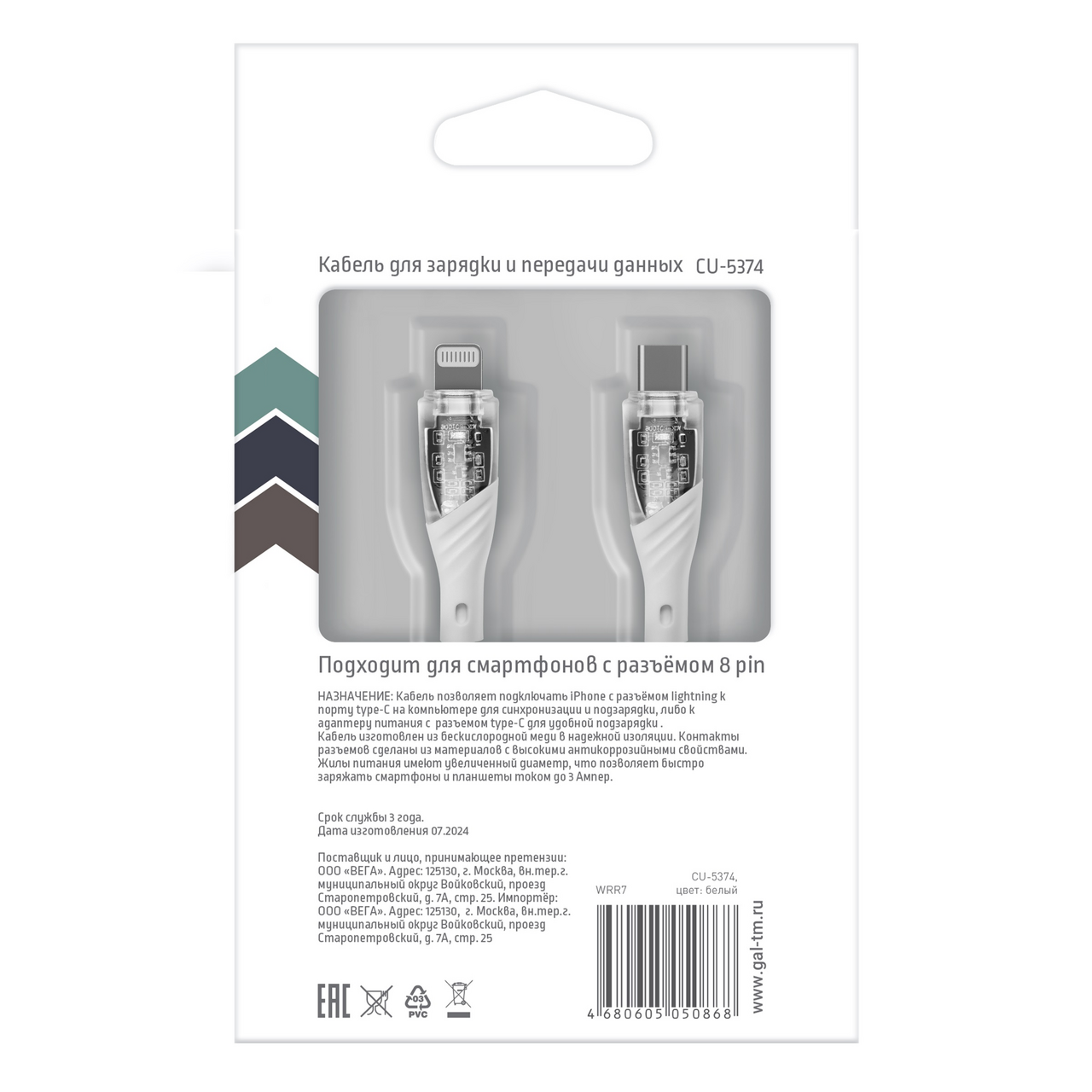 Кабель GAL CU-5374 Type-C – 8 Pin 3А, 2м