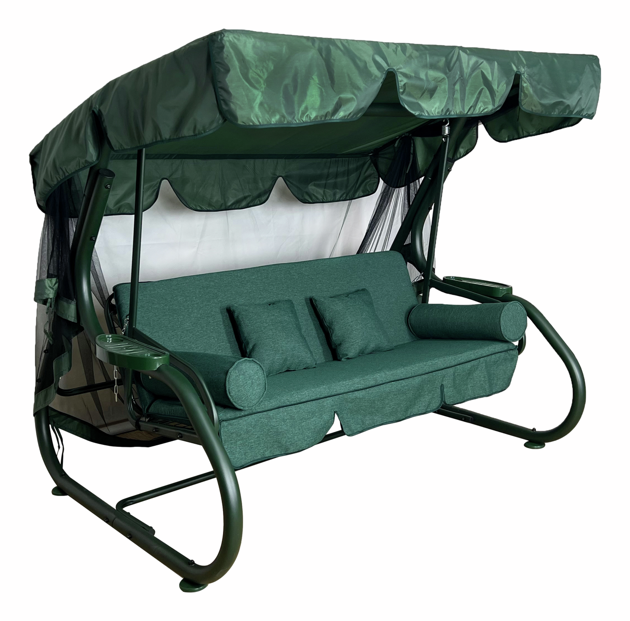 Качели Greengard садовые Авиталь-1 – это отличная садовая мебель, на которой можно наслаждаться чтением книг, прослушиванием музыки или посиделками в кругу родных и близких. Данная модель станет хорошим дополнением интерьера. Она является комфортной и практичной в использовании. Наклон тента в случае необходимости можно менять. Таким образом, он будет лучше защищать от солнечных лучей. Плотную москитную сетку можно герметично закрывать на молнию. Она надежно защищает от пыли и различных насекомых. Удобные подлокотники обтянуты мягкой тканью, что обеспечивает максимальный уровень комфорта. Все элементы текстиля легко и быстро снимаются для чистки и стирки. Такие качели отлично будут смотреться на дачном участке.