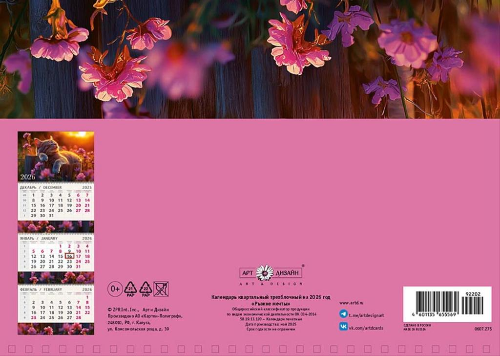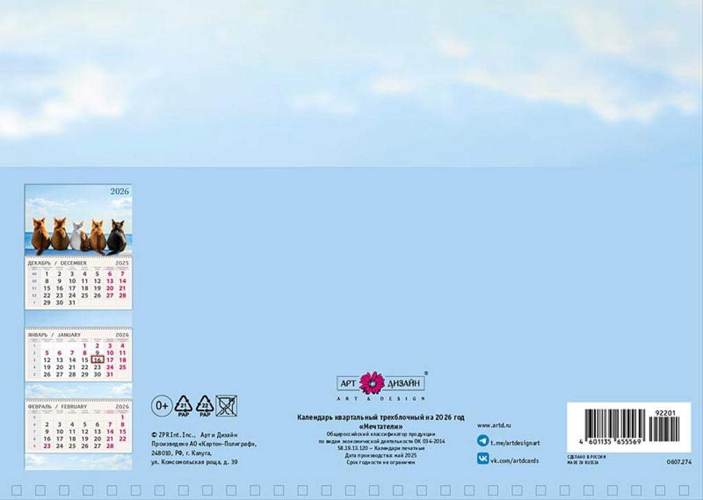 Настроение на весь день, на неделю и, наконец, на целый год складывается из мелочей. Посмотреть, какая сегодня дата, — это 30 секунд. Экран смартфона или ноутбука превращает это действие в простое получение информации. C календарями Арт и Дизайн это становится маленьким приятным ритуалом, который вызывает улыбку и направляет мысли в позитивное русло!
