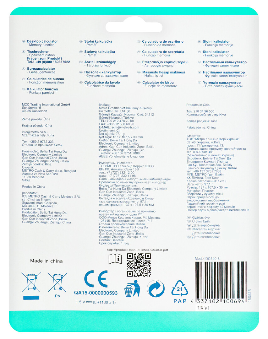 Калькулятор SIGMA DC5408 настольный представляет собой удобную и надежную офисную вычислительную машину, способную производить все необходимые математические действия и расчеты. Такой калькулятор может использоваться не только в различных сферах деятельности (торговле, бухгалтерии, на складах и т. д.), но и в бытовых целях. Он также может стать надежным помощником для студентов и школьников при решении домашних заданий по математике, физике, химии и т. д. Этот калькулятор, как и вся продукция бренда SIGMA, обладает отличными качественными характеристиками и предназначен для длительной эксплуатации. Он обеспечит точные расчеты и выполнит все необходимые математические действия. Купить калькулятор SIGMA DC5408 настольный можно в торговом центре METRO.Категория: канцелярские товары.Бренд: SIGMA.Производитель: Metro C&C.Страна: Россия.Тип: настольный.Тип калькулятора: стандартный.Количество строк: 1.Питание: LR44; солнечная батарея.Назначение: математика уровня колледжа.Материал корпуса: пластик.Цвет корпуса: серый.Батарейки в комплекте: да.Автоматическое отключение питания : да.