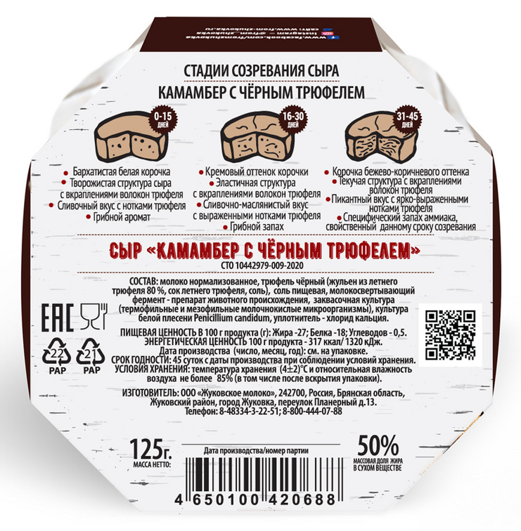 Сыр Whitecheese from Zhukovka Камамбер с черным трюфелем 50%, 125г