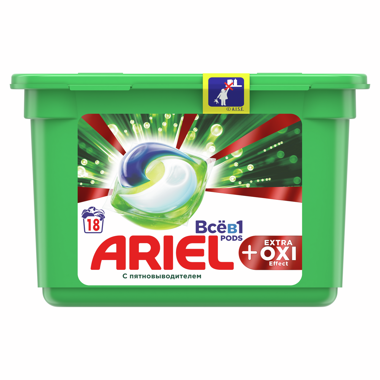Невероятная чистота в одной маленькой капсуле. Капсулы для стирки "Ariel Pods. Всё в 1 + Extra OXI Effect" имеют уникальный многосекционный дизайн, позволяющий надежно сохранять компоненты в отдельных секциях капсулы до начала стирки, и обладают высококонцентрированными очищающими свойствами. Инновационная пленка капсул для стирки полностью растворяется при контакте с водой, позволяя мощным технологиям удалять различные виды пятен. Одна капсула содержит необходимую для стирки дозу.Этот продукт может быть опасен и может нанести серьезные травмы. Храните капсулы Ariel Pods в недоступном для детей месте.Для эффективного использования продукта сначала поместите в барабан капсулу, а затем загрузите одежду.