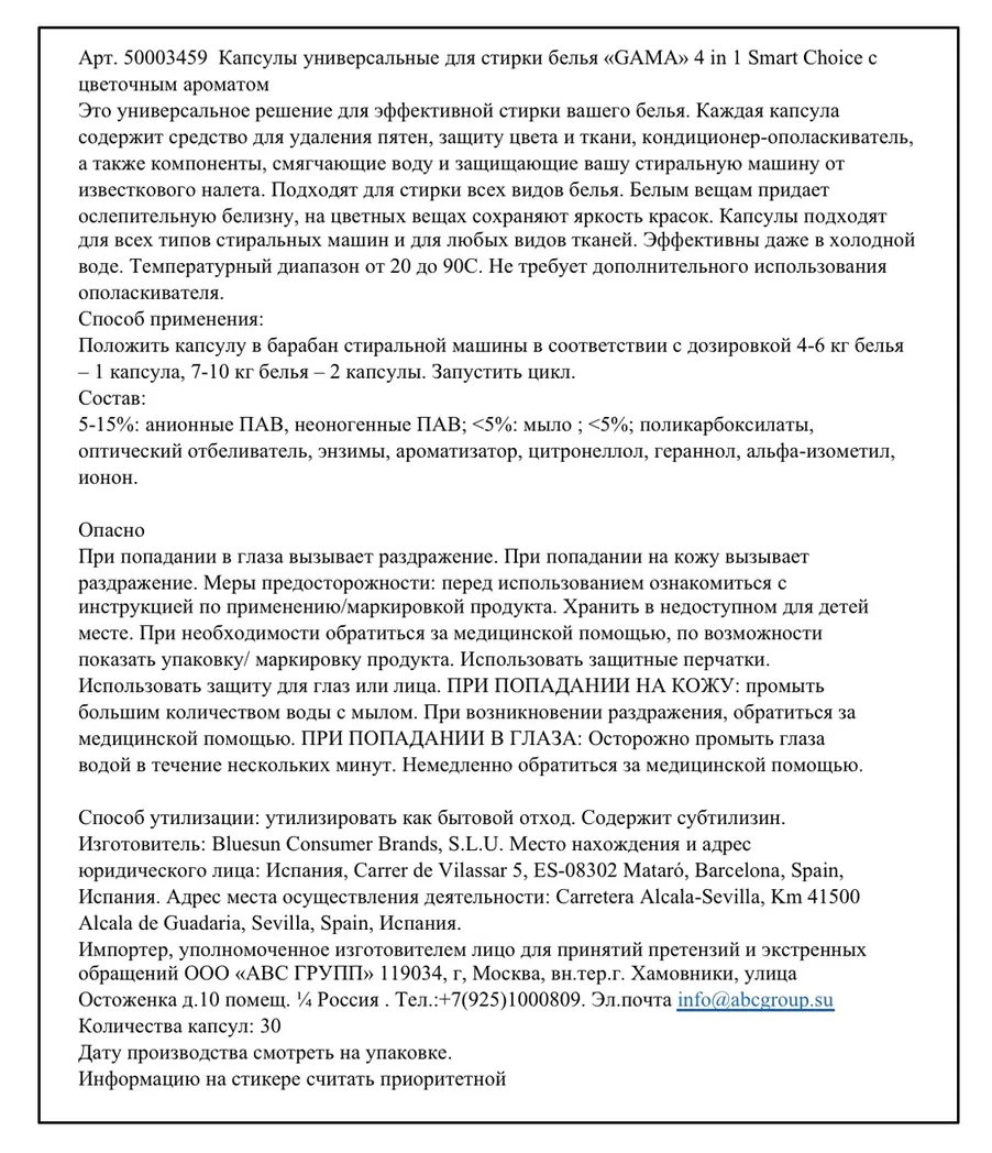 Капсулы универсальные для стирки белья Gama 4 in 1 Smart Choice Floral с цветочным ароматом- это универсальное решение для эффективной стирки вашего белья. Каждая капсула содержит средство для удаления пятен, защиту цвета и ткани, кондиционер ополаскиватель, а также компоненты, смягчающие воду и защищающие вашу стиральную машину от известкового налета. Подходят для стирки всех видов белья. Белым вещам придает ослепительную белизну, на цветных вещах сохраняют яркость красок. Капсулы подходят для всех типов стиральных машин и для любых видов тканей. Эффективны даже в холодной воде. Температурный диапазон от 20 до 90С. Не требует дополнительного использования ополаскивателя.