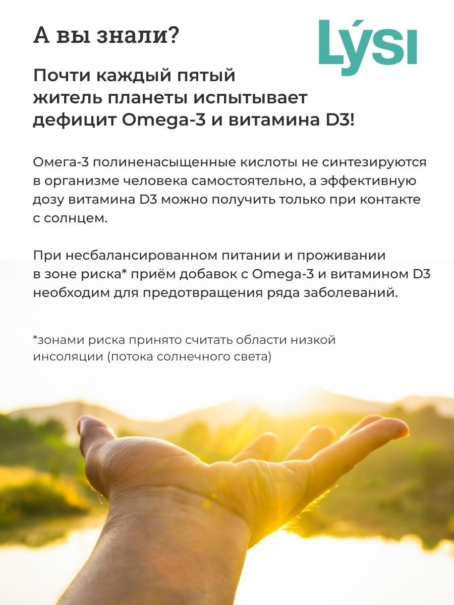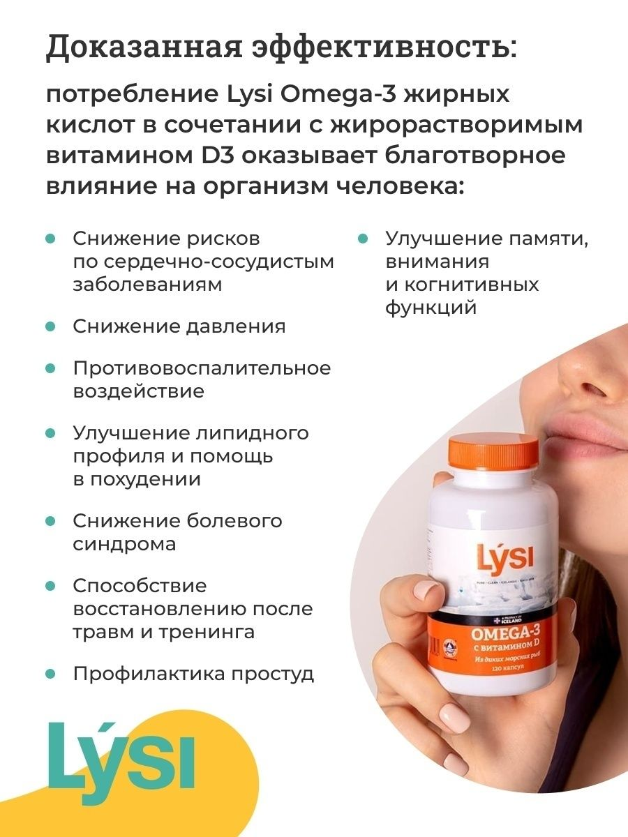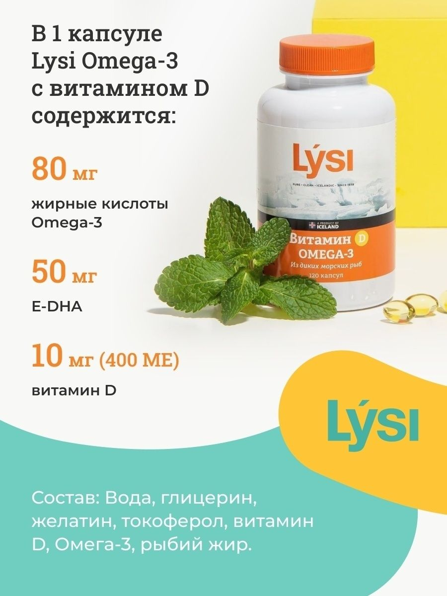 Содержит омега-3 жирные кислоты, оказывающие положительное влияние на работу сердца.Витамин D3 способствует укреплению мышц и костной ткани, поддерживает иммунитет. Не содержит лактозу, глютен, дрожжей.
