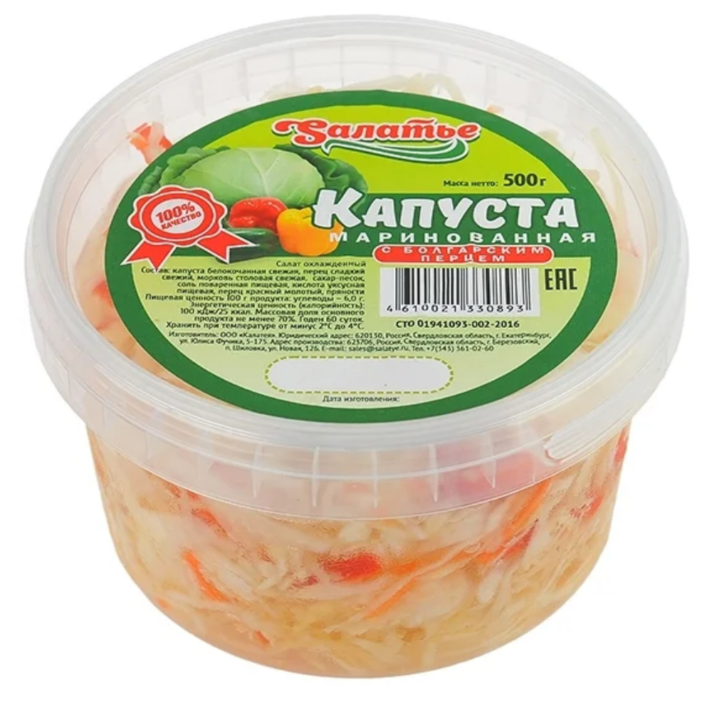 Капуста маринованная с болгарским перцем Sалатье пластиковое ведро, 500г