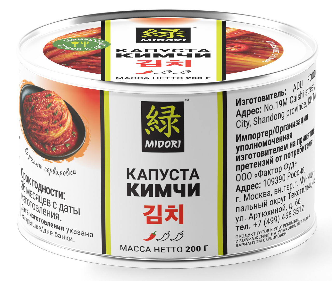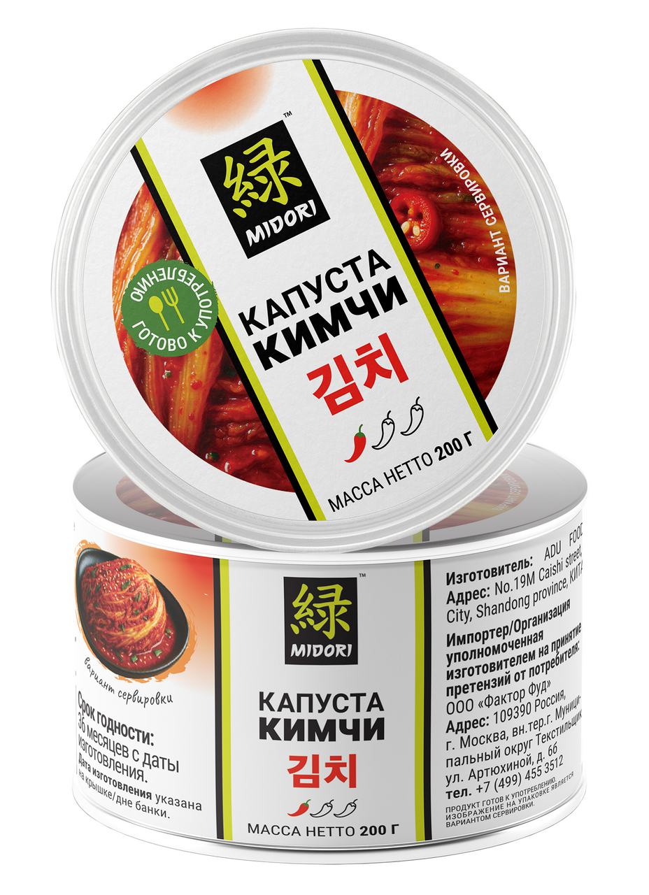 Кимчи-традиционное корейское блюдо из ферментированных овощей, чаще всего на основе пекинской капусты. Капуста Кимчи от Midori готовится из свежей пекинской капусты, с добавлением рыбного соуса и специй, строго по традиционным рецептам Кореи. Она бодрит, пробуждает аппетит и позволяет прикоснуться к подлинному вкусу Азии.