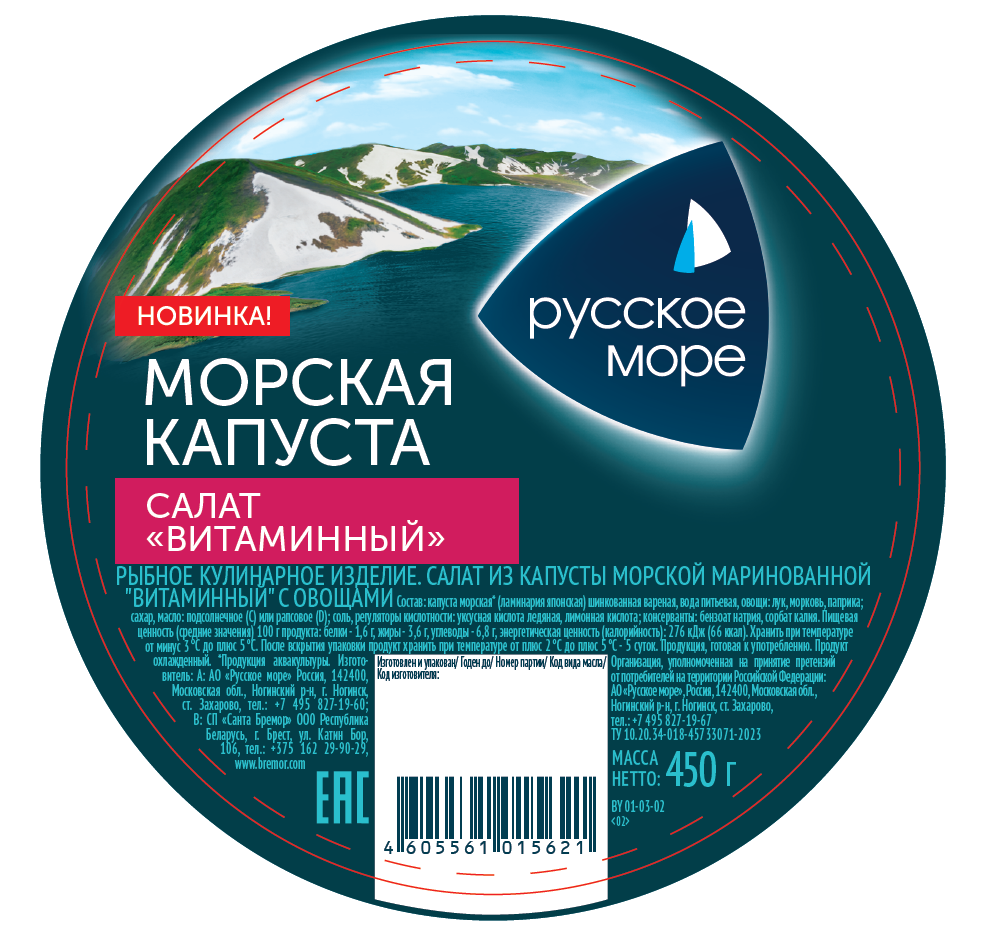 Капуста морская Русское море Маринованная витаминный салат, 450г