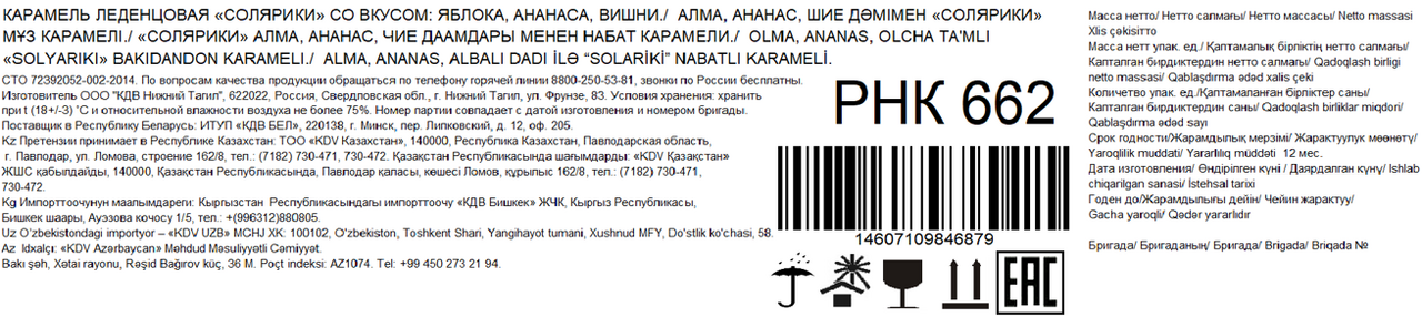 Карамель Kdv Солярики ассорти яблоко, вишня и ананас, 1кг