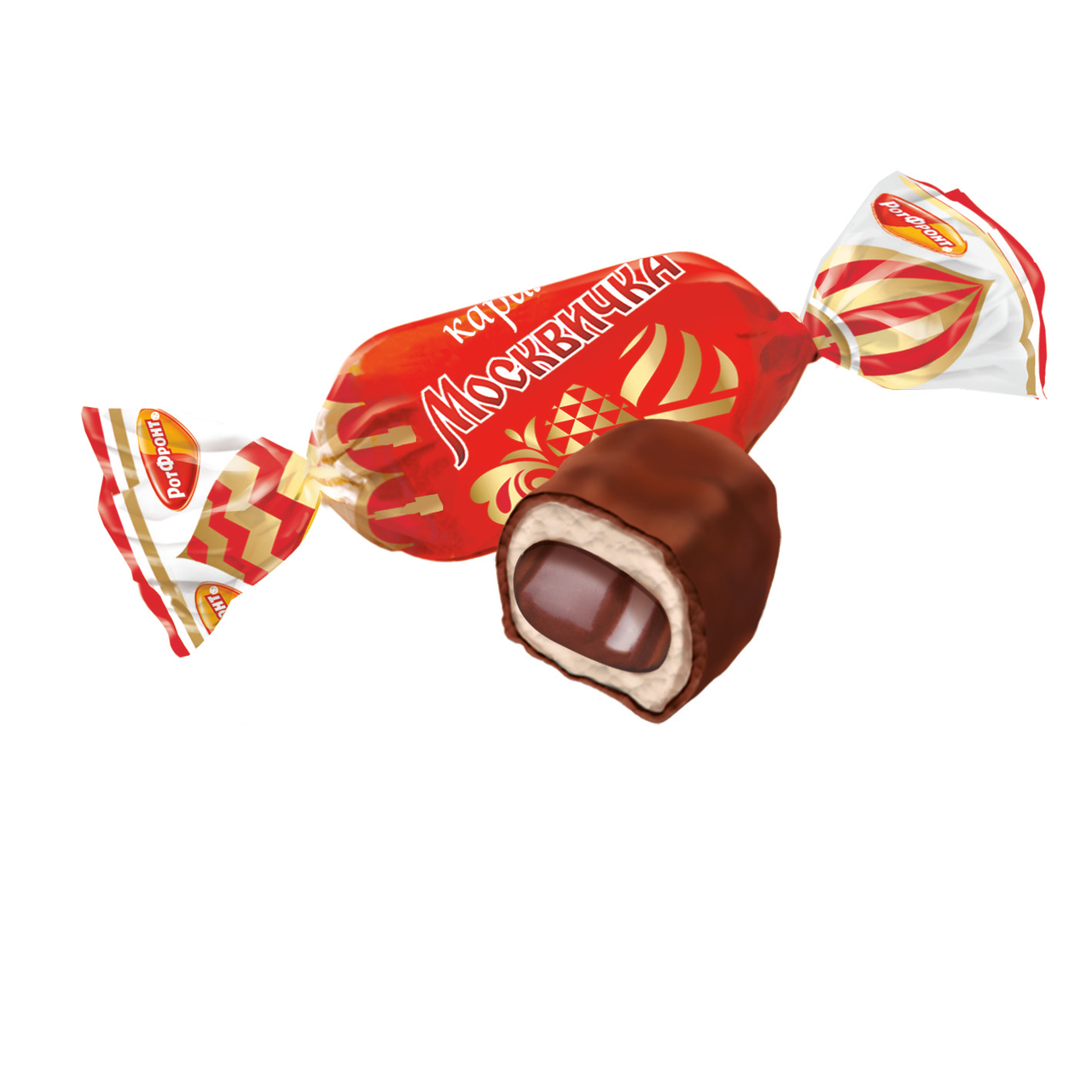 Карамель Рот Фронт Москвичка, 1кг - легендарные конфеты с патриотическим названием, ставшие одними из самых популярных и любимых среди поклонников сладостей. Белая хрустящая карамель гармонично сочетается с мягкой начинкой в виде нежной помадки с нотками какао, сгущенного молока и терпкого коньячного аромата. Изумительный тандем не остается без внимания и сейчас, очаровывая своим неповторимым вкусом и ароматом.Так же это достойное угощение для любых моментов жизни, будь то домашние чаепития, массовые мероприятия, праздничные встречи с друзьями и родными или офисные перерывы на чашку кофе. Такое угощение понравится и взрослым, и детям, которые с радостью насладятся порцией сладкого и обязательно попросят вторую.Карамель расфасована в герметичные пакеты, а каждая конфетка завернута в узнаваемый красный фантик с крупной надписью Москвичка