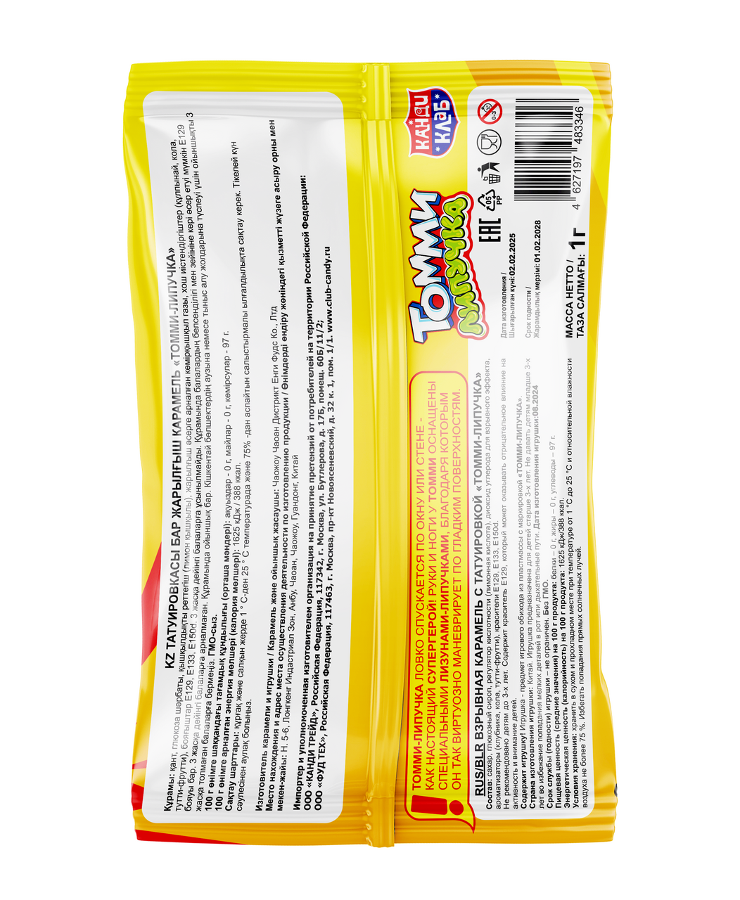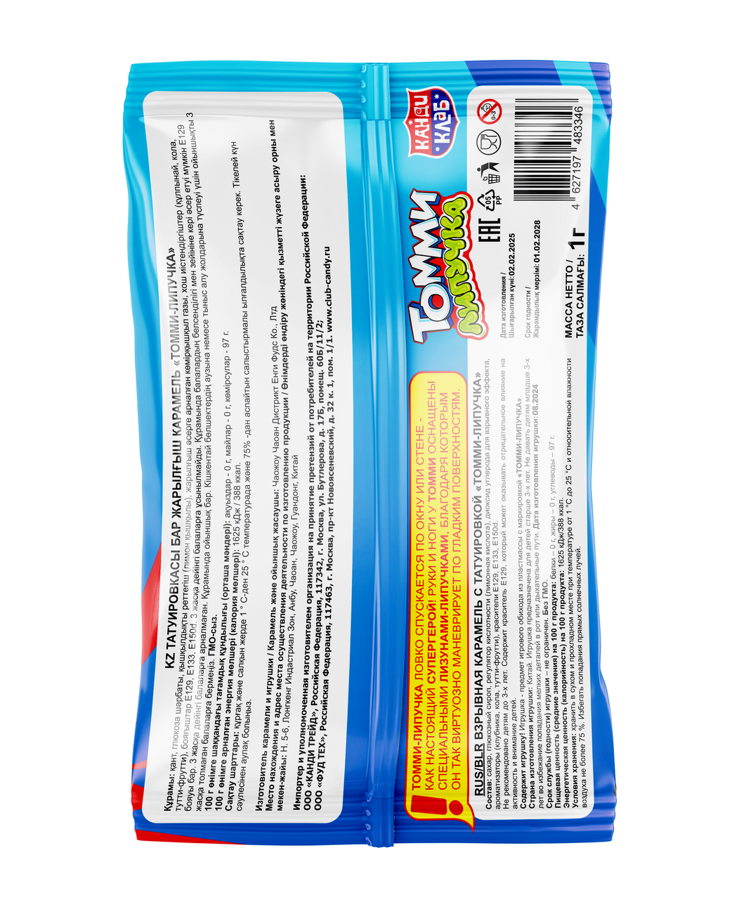 Карамель взрывная Канди клаб Томми липучка, 1г