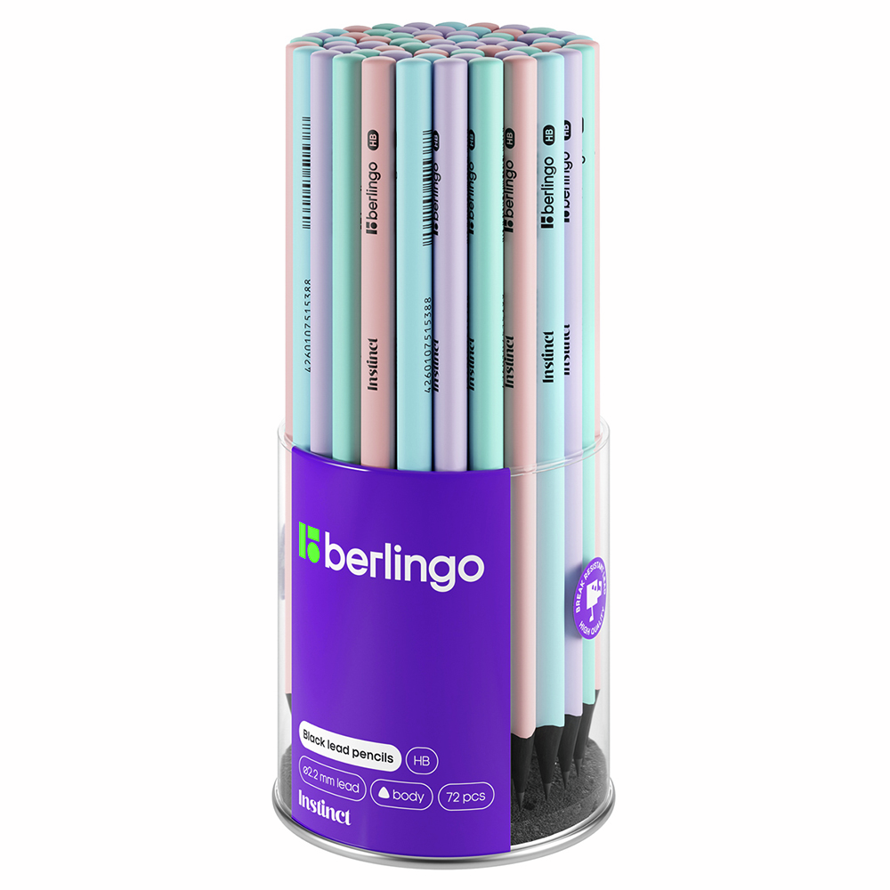 Чернографитный ударопрочный карандаш Berlingo Instinct из черного дерева, с заточкой. Нежные пастельные цвета ассорти: лавандовый, мятный, аквамириновый, фламинго. Матовое покрытие. Не ломается при падении. Закругленный, обработанный в цвет корпуса срез.