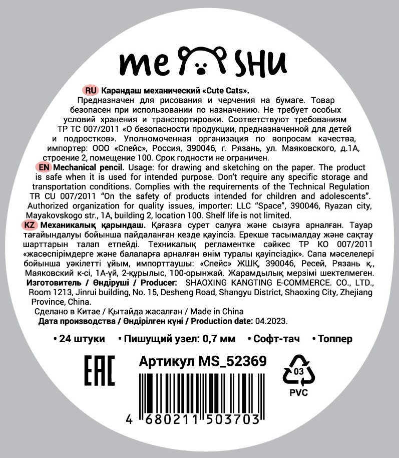 Механический карандаш Meshu Cute Cats с милым топпером поможет поднять настроение на работе и учёбе. Диаметр грифеля - 0,7мм. Твёрдость - HB. Карандаш с кнопочным механизмом удобно брать с собой: грифель убирается внутрь, поэтому не сломается и не испачкает подкладку сумки, пенала или кармана. Пластиковый корпус выполнен в четырёх вариантах дизайна. Рисунки и надписи нанесены на него при помощи высококачественной термотрансферной печати. Ручку приятно держать благодаря покрытию soft-touch.