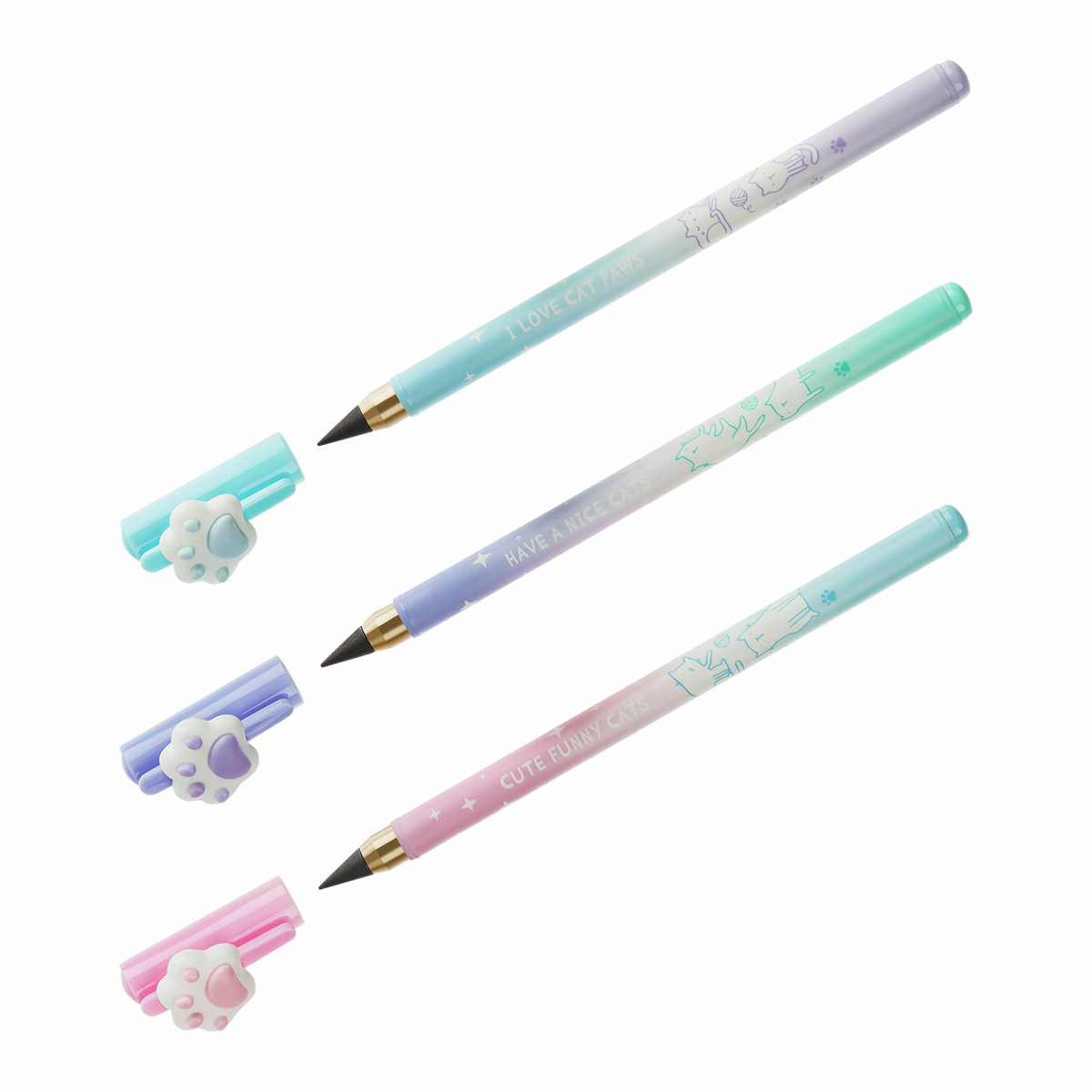Карандаш с металлическим наконечником Meshu Sweet infinity − это долговечный, практичный и необычный карандаш. У него нет грифеля, а пишущая часть сделана из специального металлического сплава. При использовании данного карандаша на бумагу переносятся микрочастицы этого сплава, оставляя следы, похожие на карандашные штрихи. Карандаш пишет легко и плавно темно-серым цветом под любым углом, линия легко стирается ластиком. Пишущий наконечник не требует заточки и может прослужить долгие годы при ежедневном использовании. Диаметр корпуса − 8,6 мм. Такой карандаш не может сломаться и не пачкает руки, а милый дизайн корпуса поднимет настроение.