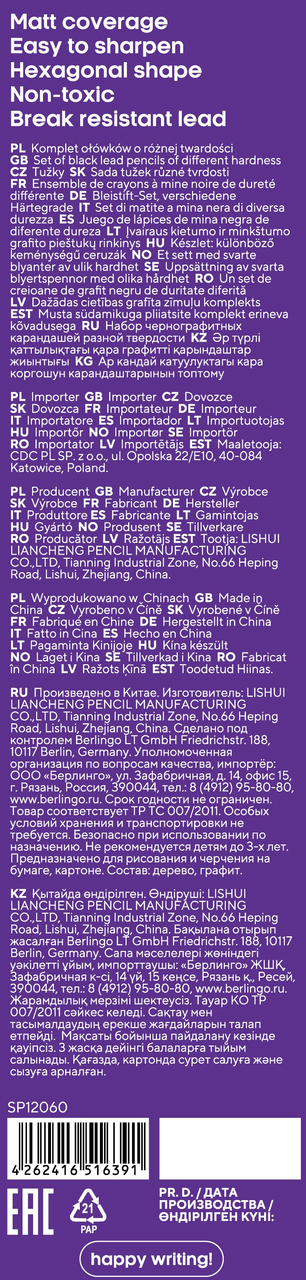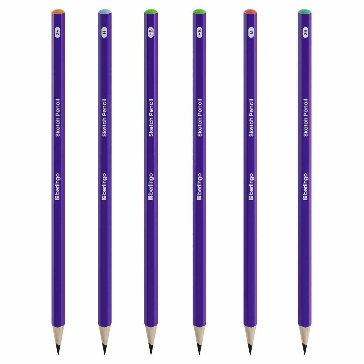 Набор чернографитных ударопрочных карандашей Berlingo Sketch Pencil, с заточкой, 6шт. Изготовлены из липы высшего качества, специально обработанной для идеальной заточки.