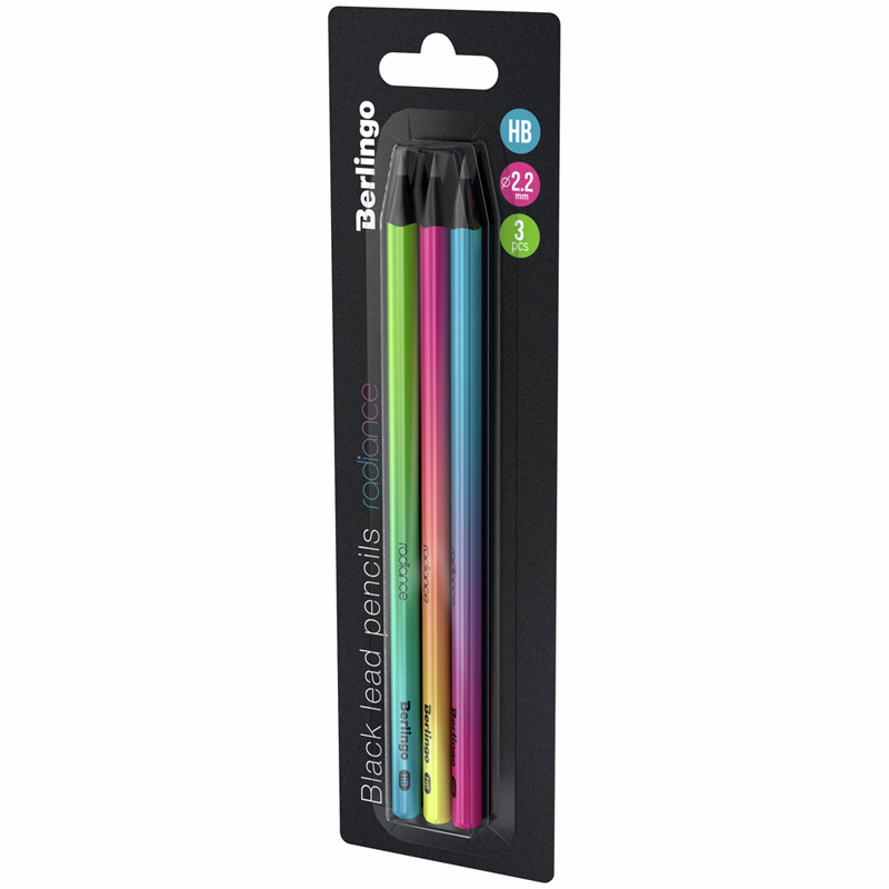 Набор чернографитных карандашей Berlingo Radiance. В дизайне чернографитного ударопрочного карандаша из черного дерева с заточкой, который входит в кросс-серию Berlingo Radiance, отчётливо прослеживается актуальная тенденция последних сезонов – неоновый градиент. Яркие высоко глянцевые дизайны корпуса представлены в 3-х вариантах. Карандаш не ломается при падении и безопасен для детей. Эргономичная трехгранная форма корпуса создает дополнительный комфорт при использовании. Карандаш закруглен, срез обработан в цвет корпуса. Он подходит для черчения и рисования.
