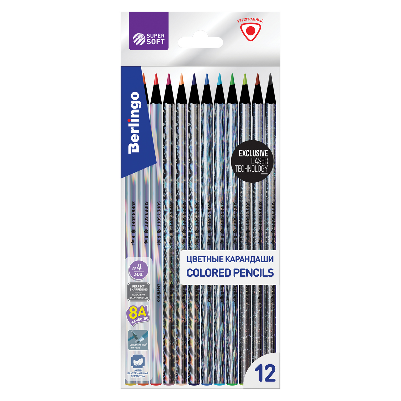 Уникальная голографическая лазерная пленка с переливом, в зависимости от освещения. 4 дизайна в наборе. Трехгранная форма. Грифель высочайшего стандарта качества 8А, являющегося максимальным для нехудожественных цветных карандашей, состоит из высококачественных пигментов ярких оттенков. Комфортное и мягкое рисование на бумаге любого типа, в том числе и на бумаге черного цвета. Увеличенная до 4мм толщина грифеля для безупречно комфортного раскрашивания. Указание цвета на каждом карандаше на английском языке. Уникальная формула и технология производства грифелей, в результате которой достигается одновременно удивительная мягкость письма и прочность, позволяющая грифелю выдерживать даже сильное нажатие под углом 45 градусов. Специальная проклейка, предотвращающая поломку грифеля внутри карандаша при падении. Стойкость к повреждениям. Корпус из древесины высшего качества, прошедшей тщательную обработку. Материал, сохраняющий свою прочность и легко поддающийся ровной заточке без усилий.