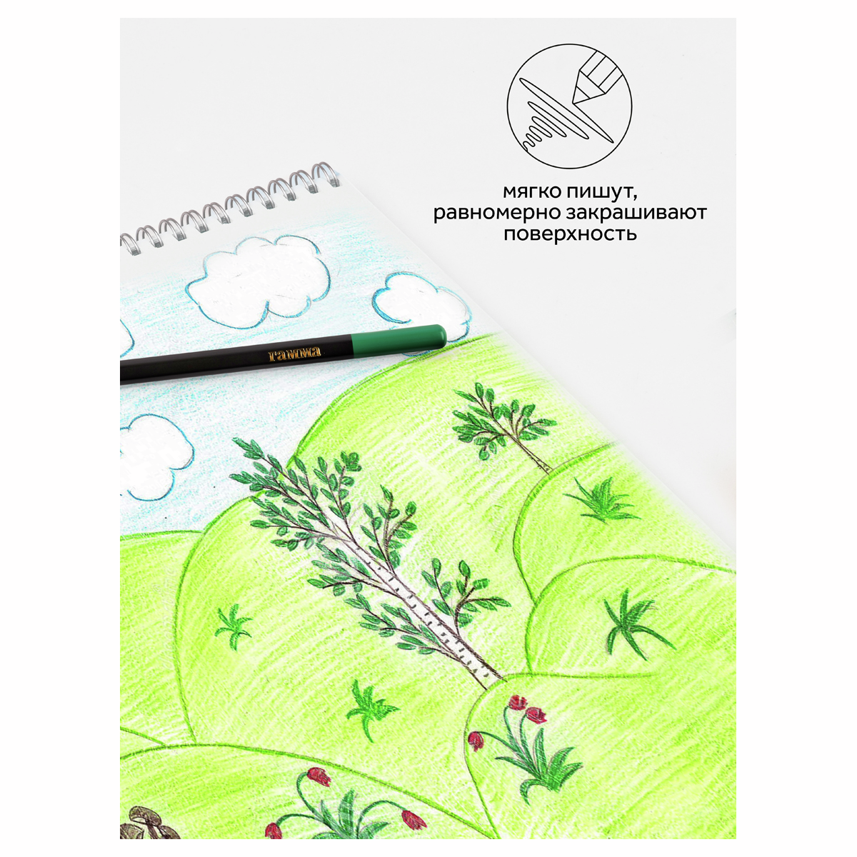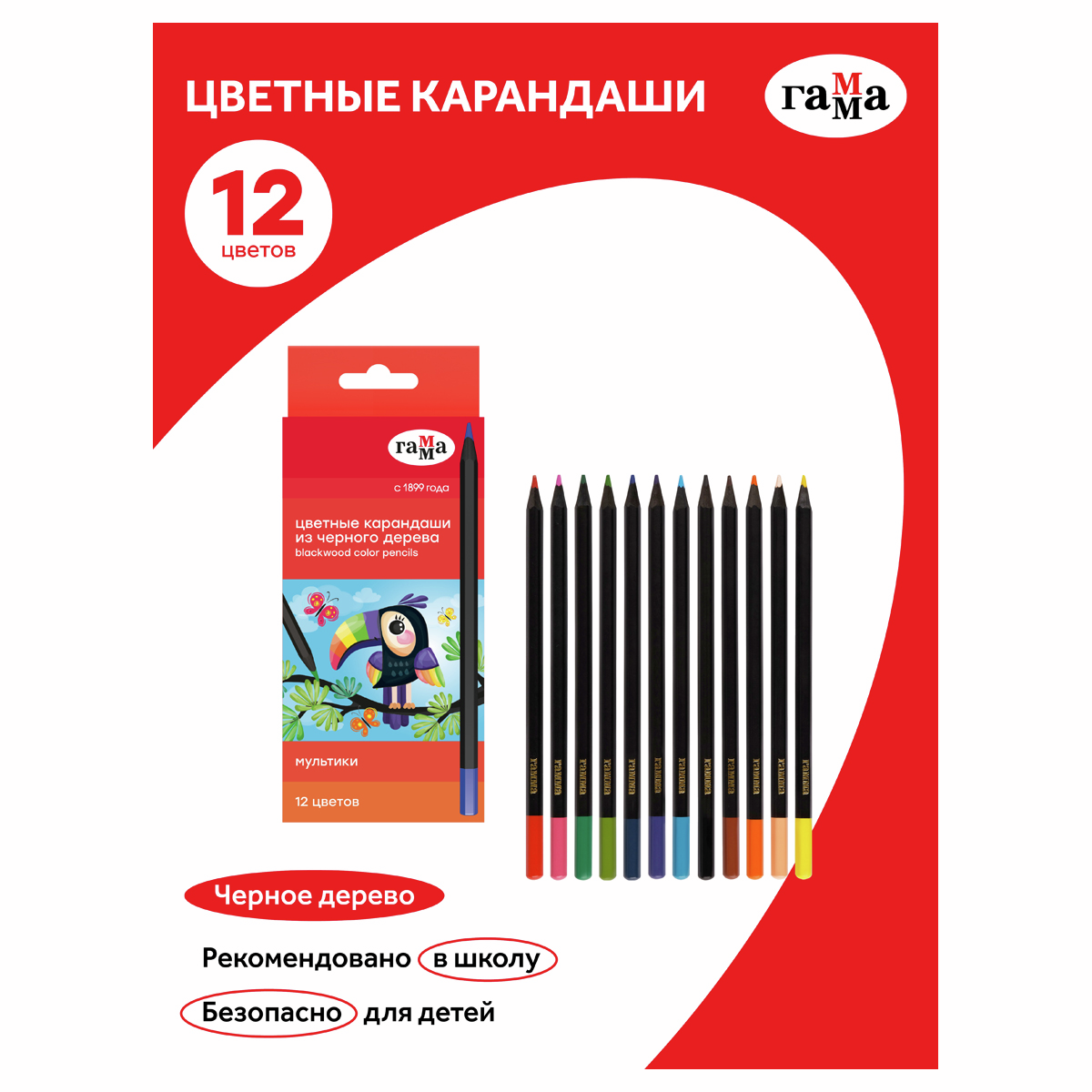 Карандаши Гамма Мультики цветные черное дерево 12 цветов