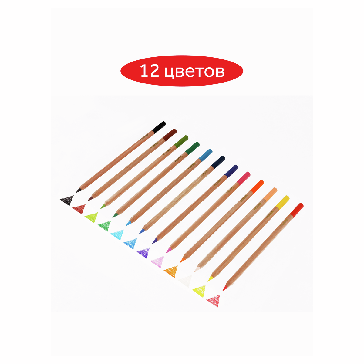 Выполнены в шестигранном корпусе и благодаря грифелю премиум-качества отличаются легким скольжением и комфортным рисованием по бумаге любого типа. В наборе 12 цветов: желтый, оранжевый, коричневый, телесный, черный, голубой, фиолетовый, синий, салатовый, зеленый, розовый, красный. Увеличенный диаметр грифеля — 4 мм способствует легкой штриховке изображения. Ребенку не придется сильно давить на каран��аш — рисунок получится ярким и равномерно закрашенным. Проклеенный ударопрочный грифель не крошится во время заточки и не ломается даже после падения. Корпус карандаша диаметром 7 мм и длиной 174 мм изготовлен из дерева. Специальная обработка древесины позволяет легко заточить карандаш без зазубрин и заноз.