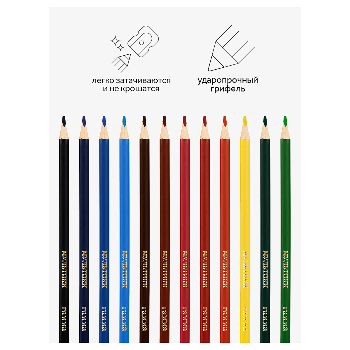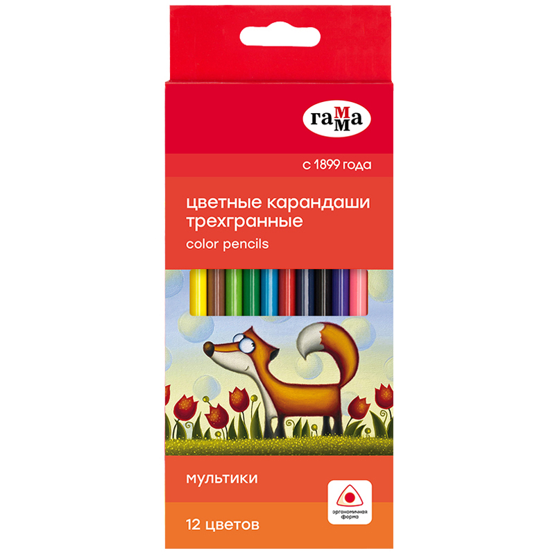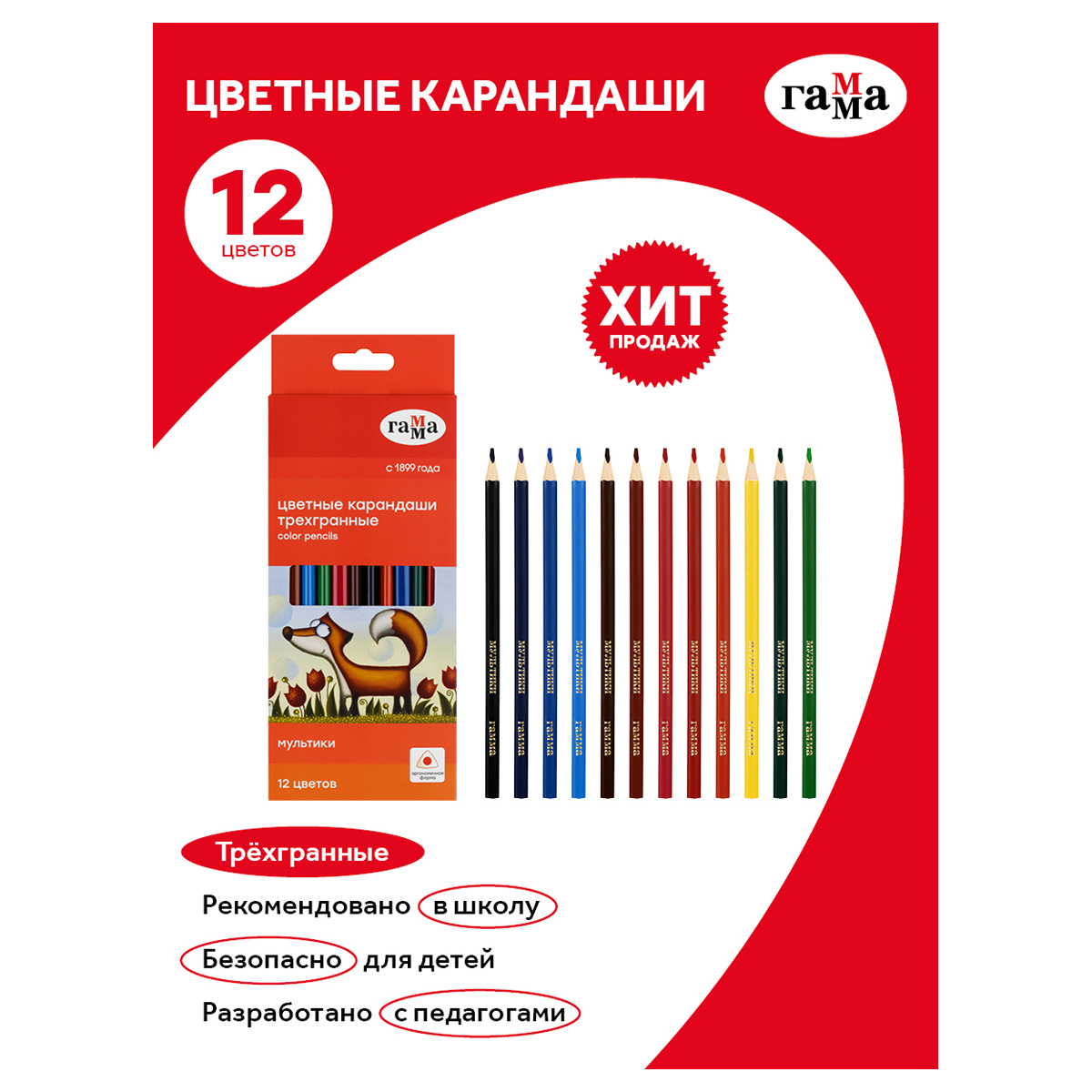 Карандаши Гамма Мультики цветные трехгранные 12 цветов