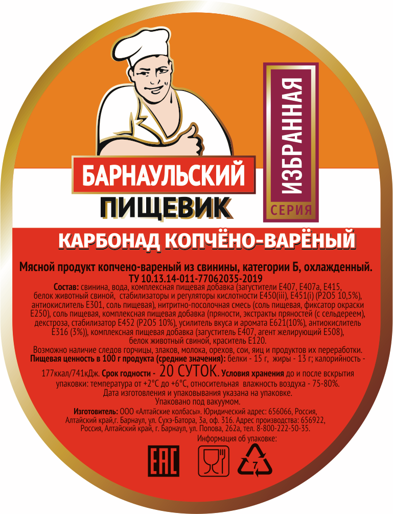 Карбонад Барнаульский пищевик варено-копченый, ~350г