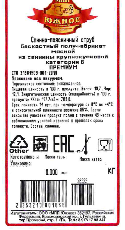 Свинина охлажденная.