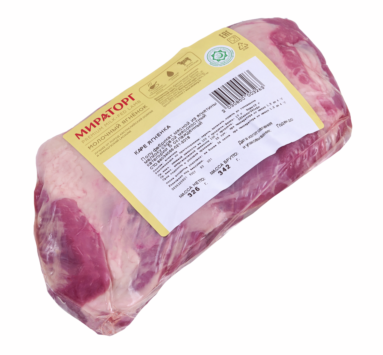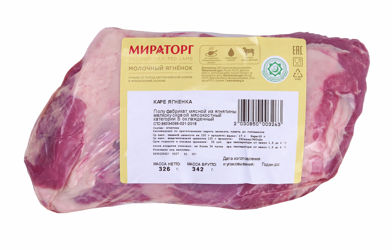 Каре ягненка Мираторг Халяль молочный ягненок 4 ребра замороженное, ~300г
