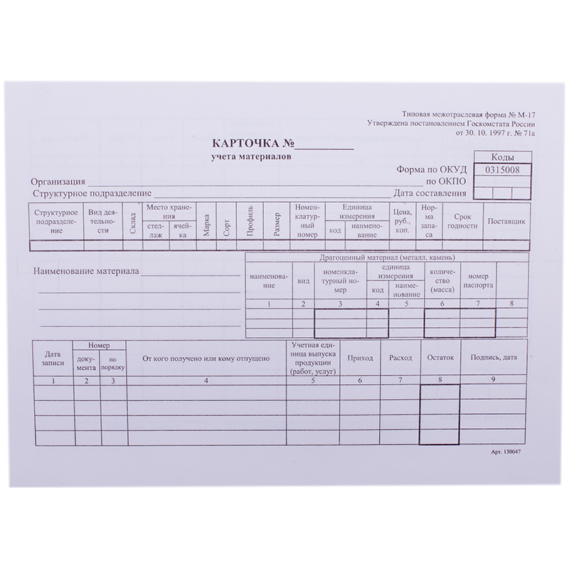 Бланк "Карточка складского учета" А5 160 г/м2 офсет
