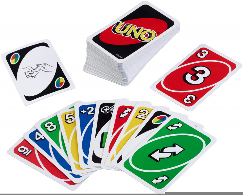 Игра карточная Uno Дисплей W2087 Классическая карточная игра Uno затягивает, а особые карты придают игре остроты. Цель игры состоит в том, чтобы первым избавиться от всех своих карт в каждом раунде и набрать очки за карты, которые остались на руках у других игроков. Очки за каждый раунд складываются и игрок, набравший первым 500 очков, выигрывает. В колоде есть особые активные карты, к примеру, пропусти ход или закажи цвет, которые могут изменить ход игры. Если тебе выпала карта обмен картами, ты можешь поменяться картами с любым игроком. А еще есть 3 пустые карты, на которых ты можешь написать свое правило, чтобы одержать быструю победу над противником. Когда на руках останется одна карта, главное – не забыть выкрикнутьUno!Uno и связанные с ним товарные знаки, и фирменный стиль принадлежат Mattel.