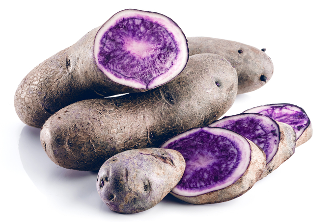 Представляет собой продолговатые клубни крупного размера, покрытые толстой темно-фиолетовой кожурой. Мякоть – бело-фиолетовая, с чуть сладковатым вкусом и легкими ореховыми нотками. Отличается высоким содержанием минералов и витаминов, клетчатки, пищевых волокон, каротиноидов и фенольных кислот. Употребляется в отварном, жареном или запеченном виде, идеально подходит для приготовления пюре, салатов и овощного рагу.