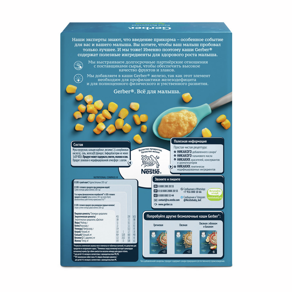 Каша безмолочная детская Gerber Кукурузная с 5 месяцев, 180г