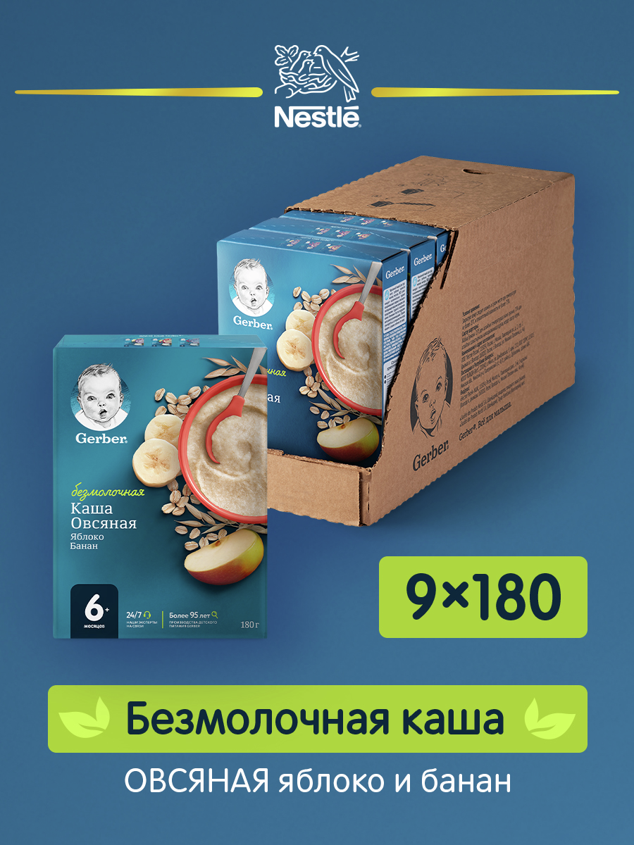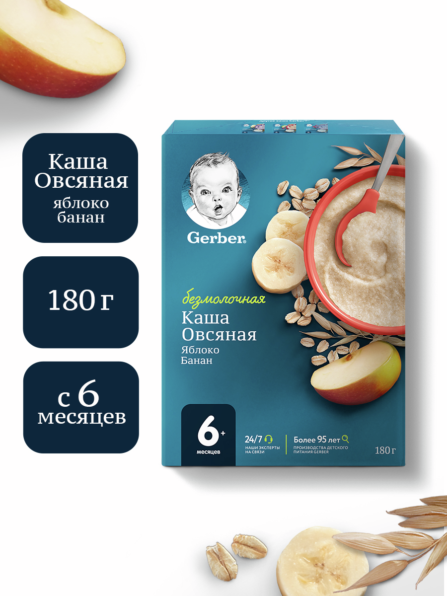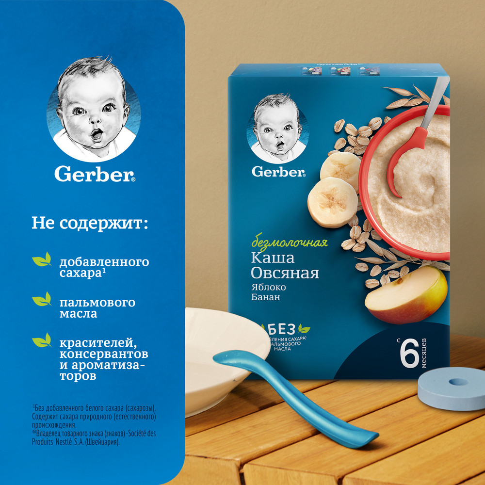 Каша безмолочная детская Gerber Овсяная Яблоко и банан с 6 месяцев, 180г