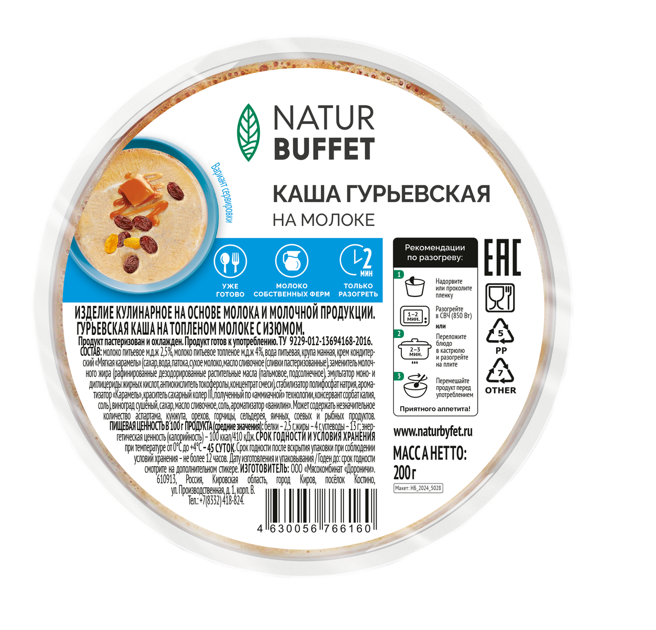 Изделие кулинарное на основе молока и молочной продукции. Станет прекрасным выбором для полноценного и полезного завтрака. Такое блюдо заряжает энергией на весь день. Продукт полностью готов к употреблению, при необходимости кашу можно дополнить вареньем, сливочным маслом, орешками, сухофруктами или другими начинками по вкусу.
