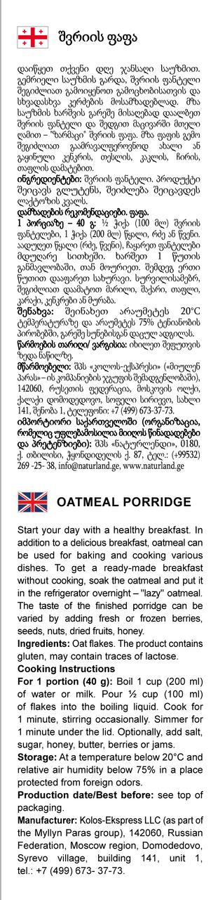 Хлопья изготовлены по старинному рецепту, который применялся в первое десятилетие работы компании. Опыт пяти поколений в условиях современного производства позволяет получить традиционную крупную структуру продукта. Благодаря этому продукт медленнее переваривается, дольше поставляя энергию организму и создавая чувство сытости на долгое время, что помогает контролировать свой вес.