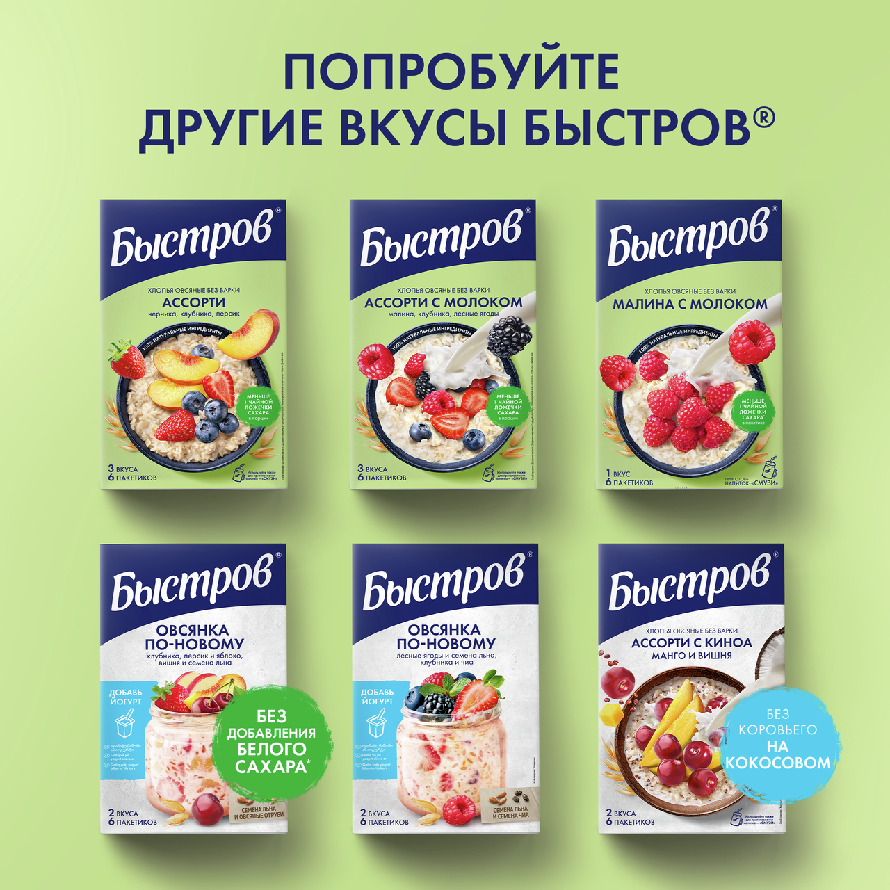Каждый день может быть обычным, а может быть ярким и полным впечатлений! Начни утро с полезной каши Быстров из цельных злаков! Они дают заряд энергии, чтобы брать больше от жизни и наслаждаться каждым моментом дня. Живи ярче уже сегодня! Мы создали каши Быстров только из натуральных ингредиентов. В хлопьях сохранены все полезные компоненты овсяного зерна (оболочка, эндосперм и зародыш), а значит максимум полезных свойств. Каждая порция каши является источником пищевых волокон (клетчатки), необходимых для пищеварения. Хлопья в каше такие же полезные, как и варимые, но они тоньше поэтому для приготовления их достаточно залить кипятком. Каждая порция содержит неполную чайную ложечку сахара, а также щепотку морской соли. Соль получается за счет испарения воды под жарким израильским солнцем и поэтому подвергается минимальной обработке.