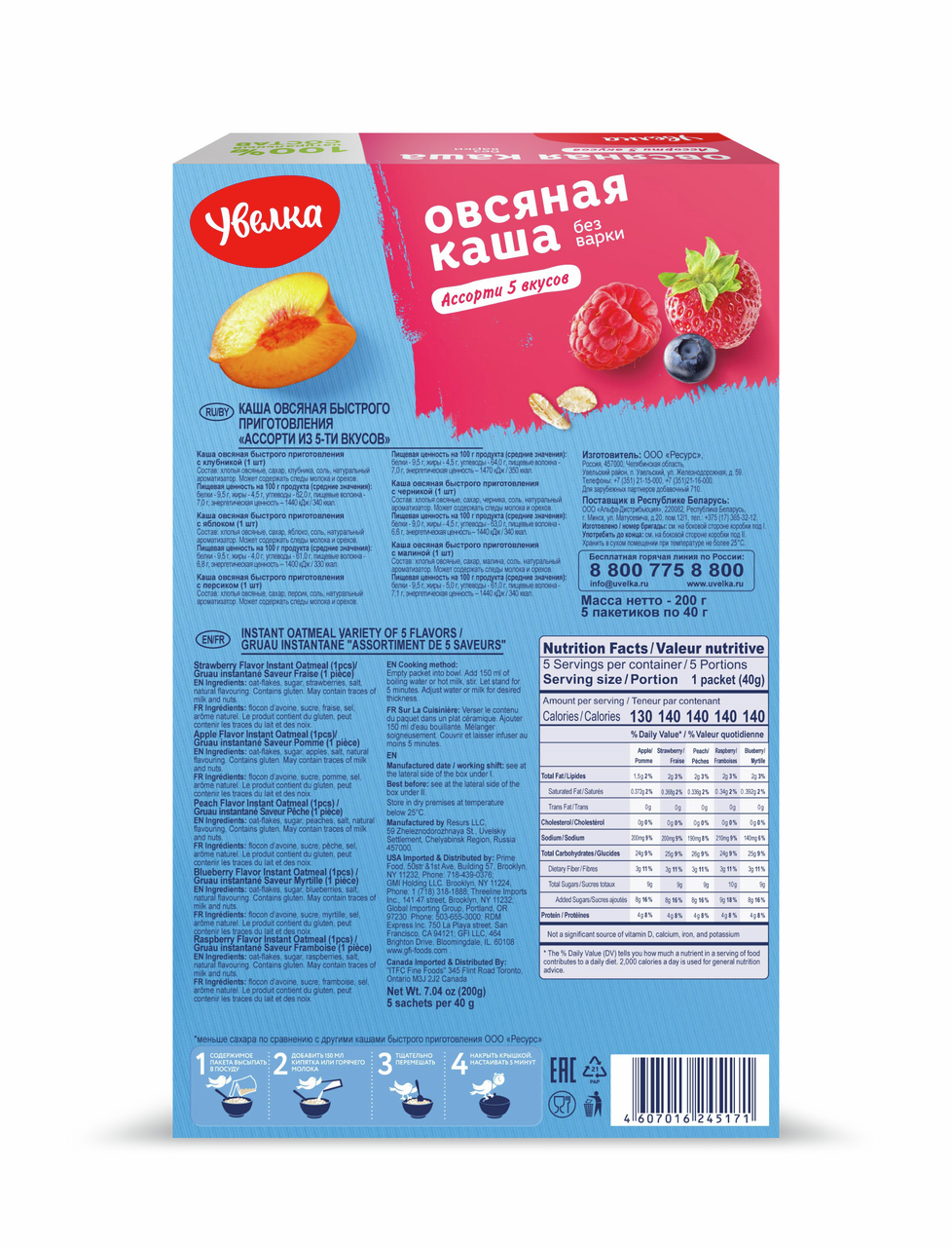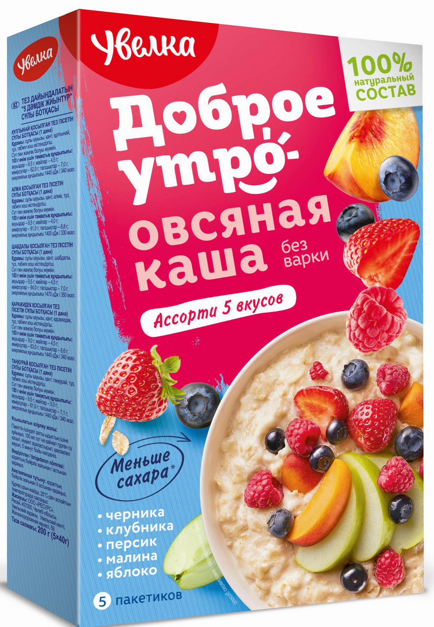 Каша овсяная Увелка ассорти 5 вкусов (40г x 5шт), 200г