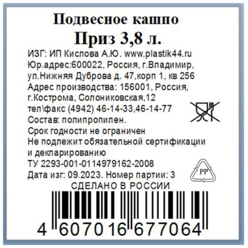 Кашпо подвесное Кпласт Приз, 3.8л