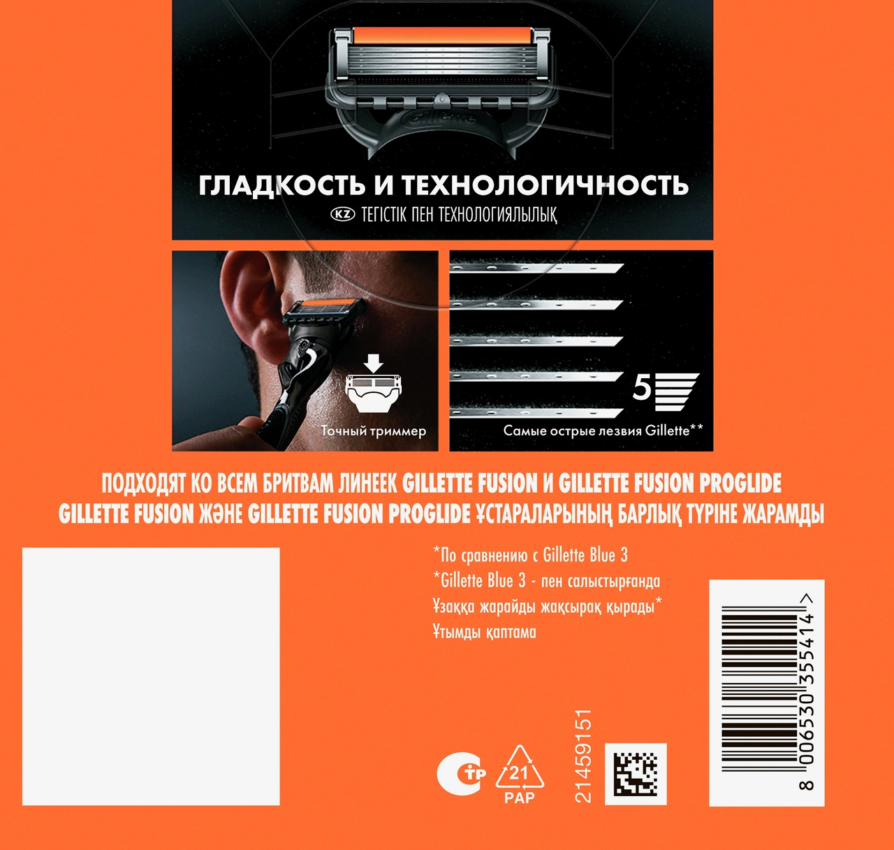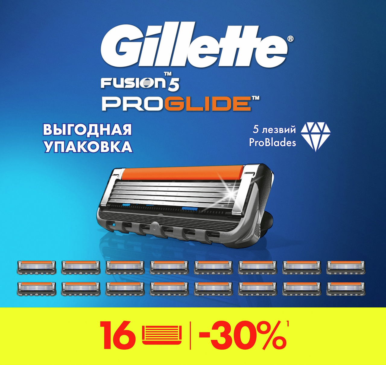 Сменные кассеты Gillette Fusion5 ProGlide для бритвы с 5 лезвиями обеспечивают бескомпромиссную гладкость и комфорт. Модернизированная технология лезвий с дополнительными микрогребнями, которые направляют волоски для комфортного бритья. Благодаря лезвиям, расположенным близко друг к другу, а также точному триммеру с обратной стороны вы сможете бриться с уверенностью. Одной кассеты хватает на месяц регулярного бритья. Сменные кассеты ProGlide подходят к бритвенным ручкам ProGlide и Fusion. Преимущества: - Точные лезвия без труда захватывают практически каждый волосок; - 5 лезвий, уменьшающих трение, для гладкого бритья надолго; - Усовершенствованная увлажняющая полоска (по сравнению с Fusion5); - Точный триммер для труднодоступных мест и ухода за бородой и усами; - Смазывающая полоска скользит по коже, увлажняет и предотвращает ее покраснение и раздражение; - Микрогребни бережно оттягивают и разглаживают кожу. Комплектация: сменные кассеты Gillette Fusion5 ProGlide для бритвенного станка для мужчин, в упаковке 16шт.