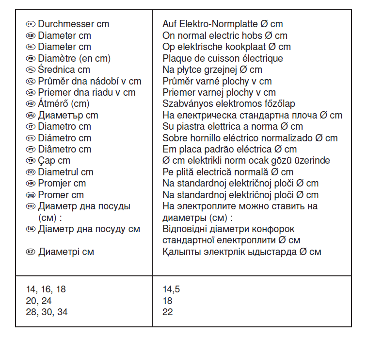 - Диаметр верха, см 16; 18; 20; 24