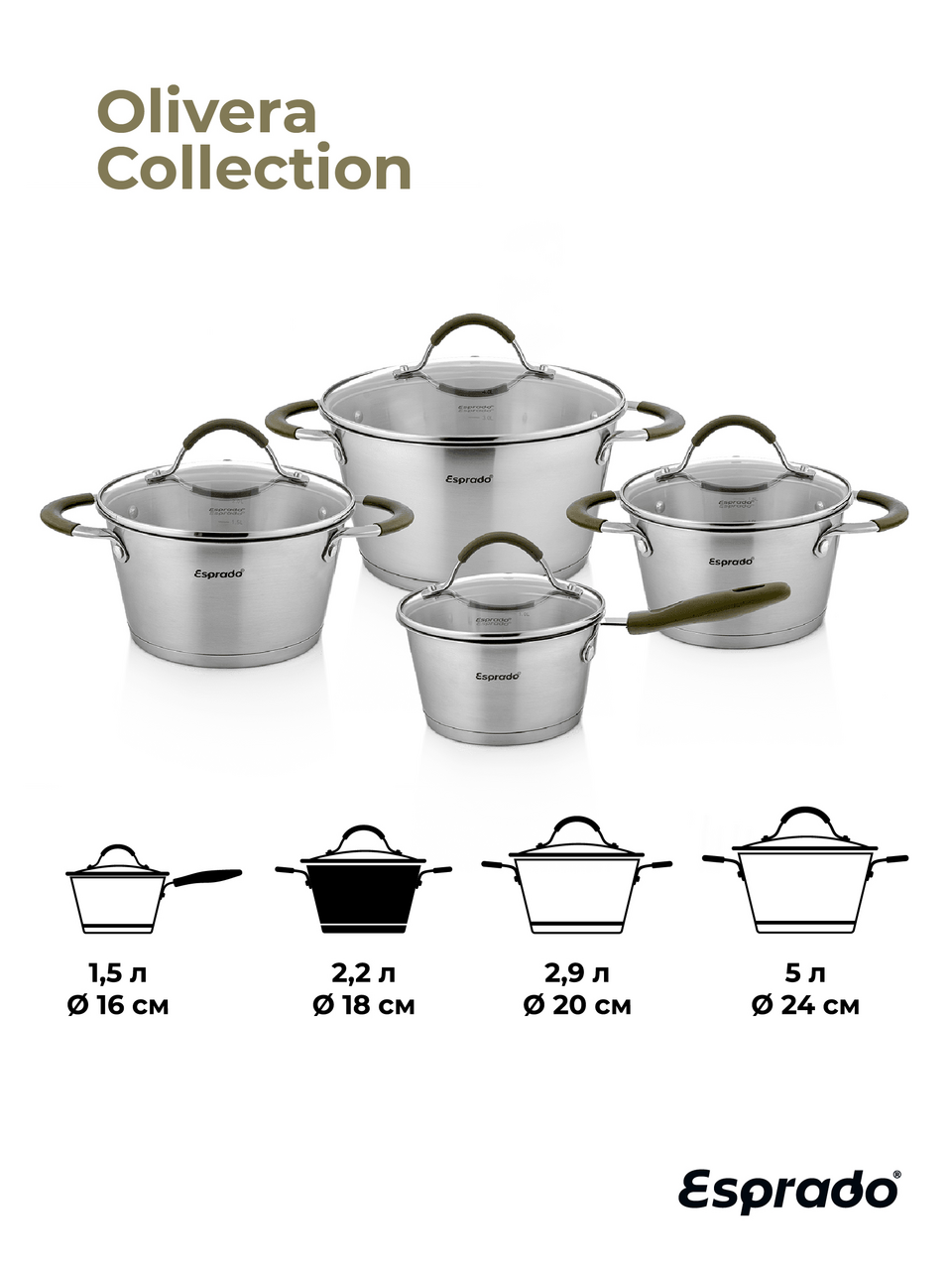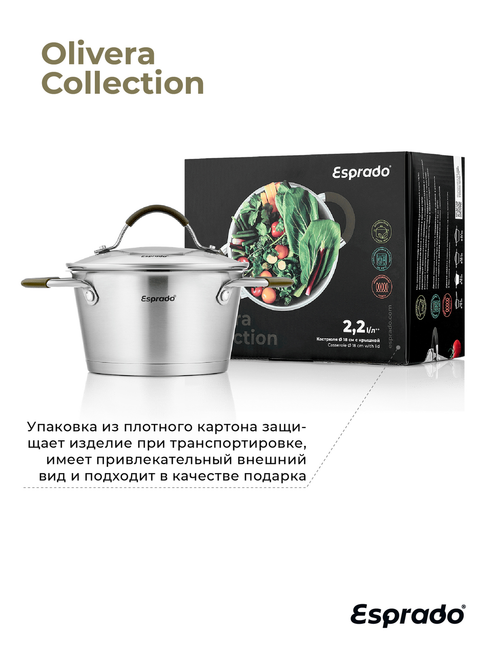 Кастрюля с крышкой Esprado Olivera 2.2л, 18см