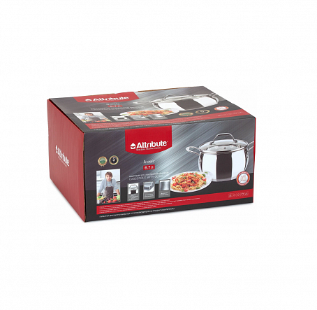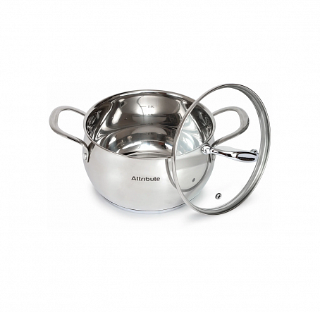 Кастрюля с крышкой Attribute Steel Iconic, 24 см, 6,7 л сделана из прочного и надежного материала – нержавеющей стали. Эта посуда окажет незаменимую помощь на кухне. В ней можно готовить супы или каши, отваривать яйца или овощи. Подходит кастрюля и для варки варенья, повидла, джема или напитков: компота, морса и киселя. Нержавеющая сталь не подвергается коррозии, стойко выдерживает повышенные температуры и резкие температурные перепады. ��но состоит из пяти слоев, быстро и равномерно прогревается. Благодаря этой особенности еда не пригорает в течение готовки. Крышка сделана из жаростойкого стекла. Оно тоже хорошо выдерживает высокие температуры и их перепады. Кастрюля годится для использования на любых плитах: газовых или электрических. Можно также ставить ее в духовую печь и использовать для запекания блюд.