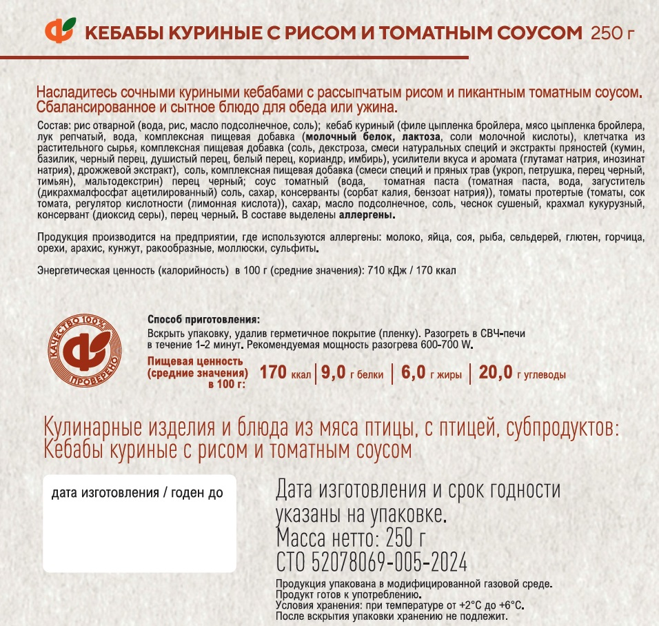 Кебабы куриные Фабрика здорового питания с рисом, 250г