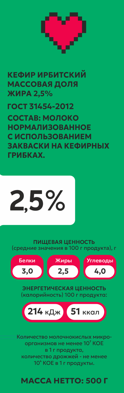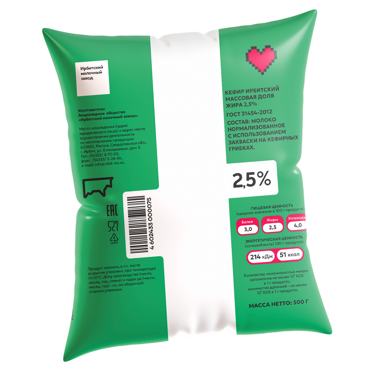Кефир Ирбитский молочный завод 2.5%, 500мл