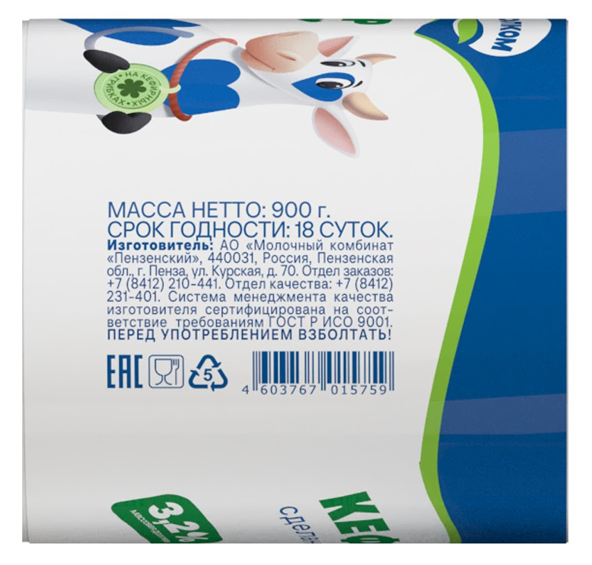 Кефир Молком 3.2%, 900г