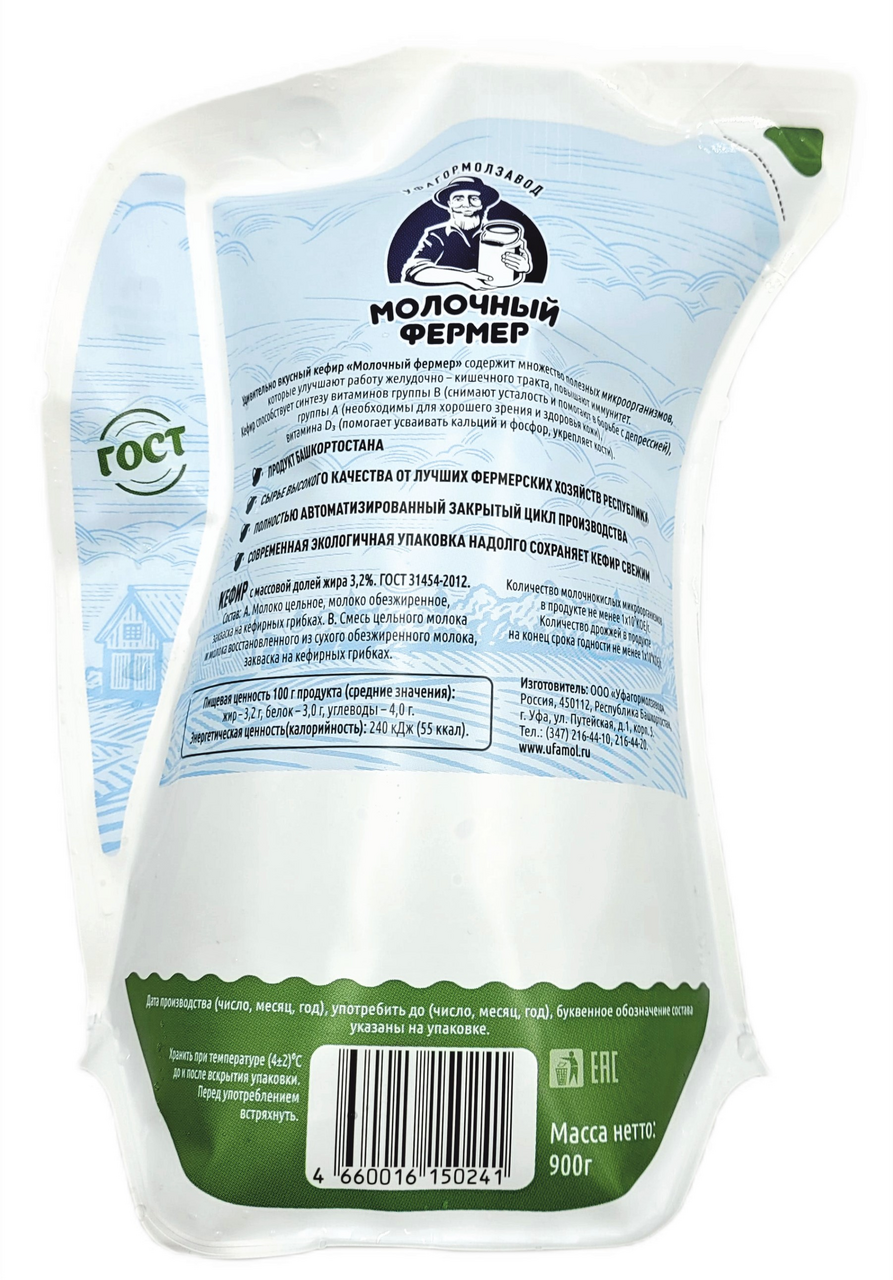 Кефир Молочный фермер — кисломолочный напиток, получаемый из цельного или обезжиренного коровьего молока путём кисломолочного брожения с применением кефирных грибков. Кефир обладает не только прекрасным неповторимым вкусом, но и уникальными полезными свойствами, он легко усваивается, оказывает тонизирующее действие, влияет на работу желудка и кишечника: стимулирует выделение пищеварительных соков, нормализует моторную функцию пищеварительного тракта, возбуждает аппетит. Польза кефира при снижении и нормализации веса проверена годами. Пейте и будьте здоровы!