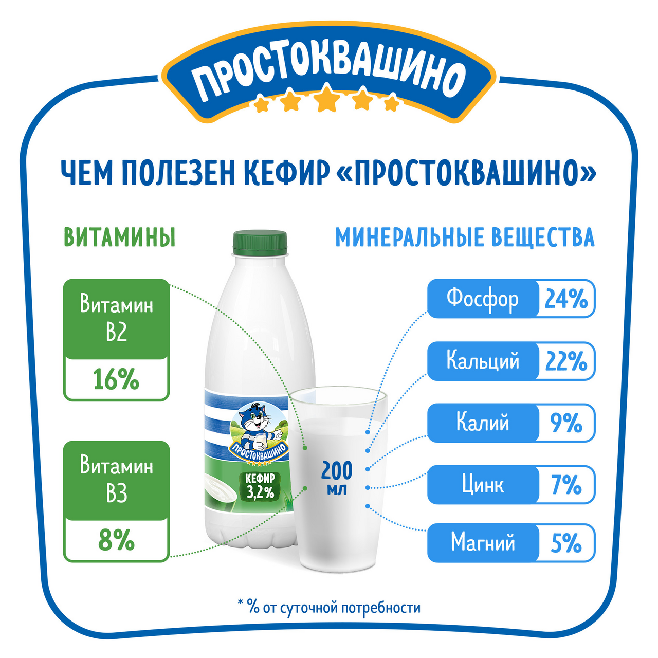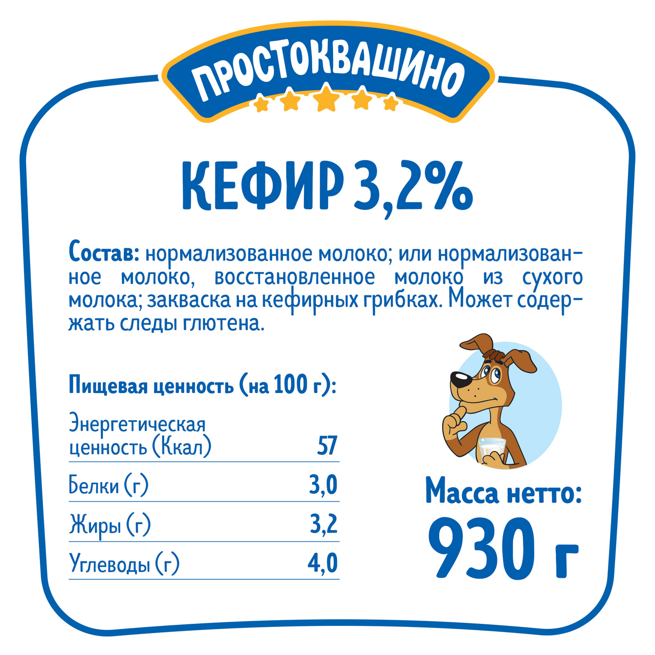Кефир Простоквашино 3,2%, 930 г – вкусный, а главное – полезный продукт, который изготавливают исключительно из натуральных компонентов: нормализованного молока и закваски на кефирных грибках, которая и придает этому напитку легкую кислинку. Густой и питательный продукт помогает организму избавиться от шлаков и токсинов, способствует правильному обмену веществ и в целом нормализует микрофлору и работу кишечника. А благодаря невысокой калорийности продукт могут употреблять люди, придерживающиеся диеты. На основе кефира получаются прекрасные маринады, которые делают мясо более мягким, нежным и сочным.